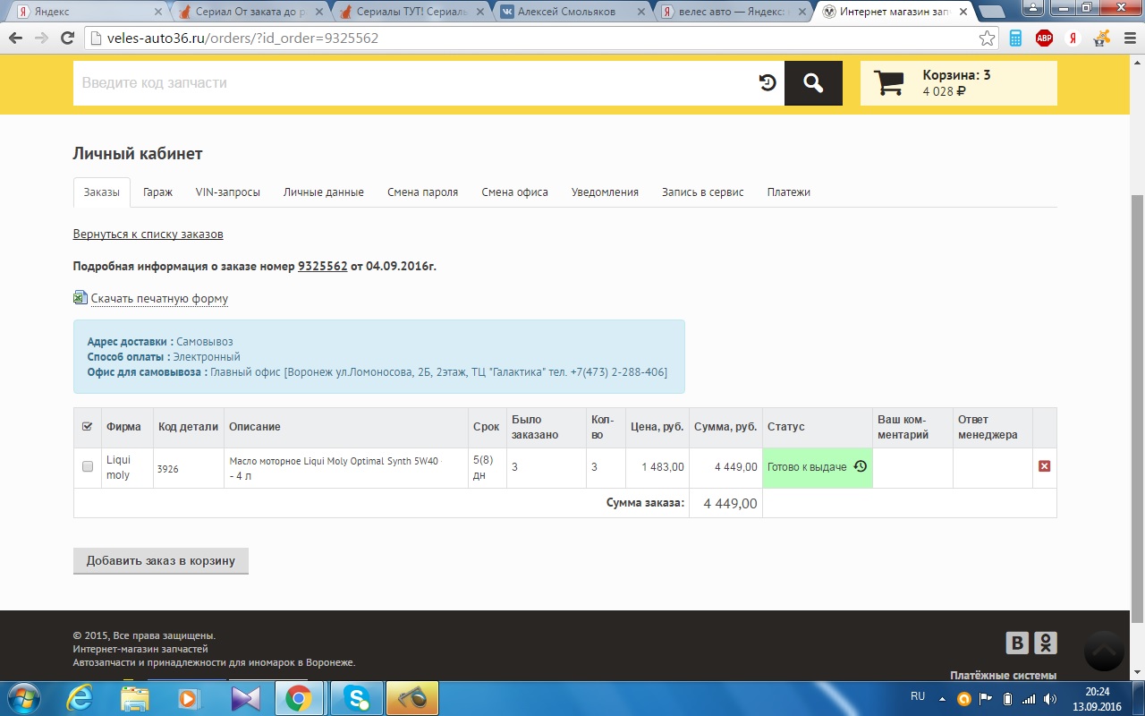 но заказ все еще болтается.