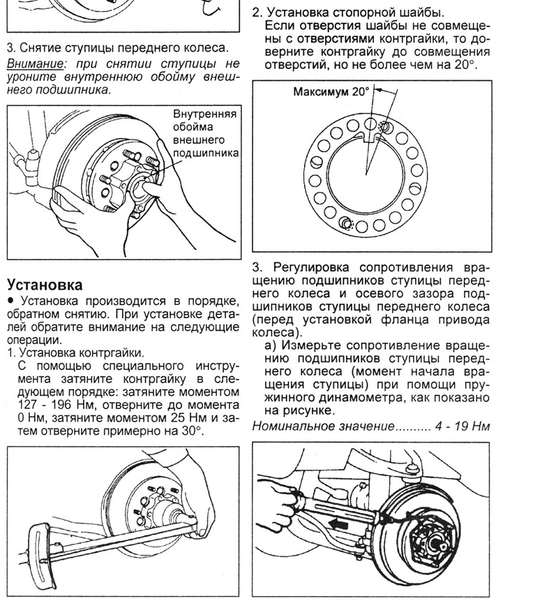 Ну и собственно порядок затяжки никто не отменял. 25 Нм от руки (пальцами) не создашь. Если нет ключа динамометрического, то после отпуска гайки до нуля, проверь люфт, затяни градусов на 30-40, проверь люфт, если есть, то затяни еще градусов на 30-40, проверь люфт, если нет хорошо. Проверь как вращается колесо - если закусывает или есть звуки посторонние отпусти на 20 гр. Опять проверь люфт. Если люфт остался, меняй подшипник - это в теории. У тебя то все новое, должно получиться.