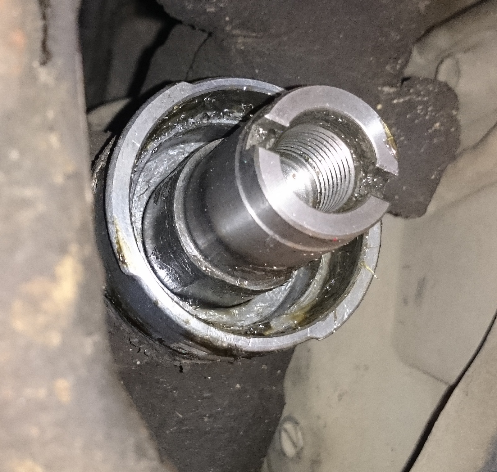 а достать я уже говорил, на моей второй фотке видно практически...эта тяга без наконечника на ней, уходит внутрь рейки на ура)) потом ее смещаешь на пол миллиметра, или что нить подкладываешь и выкручиваешь руль...и все втулку выталкивает только в путь))