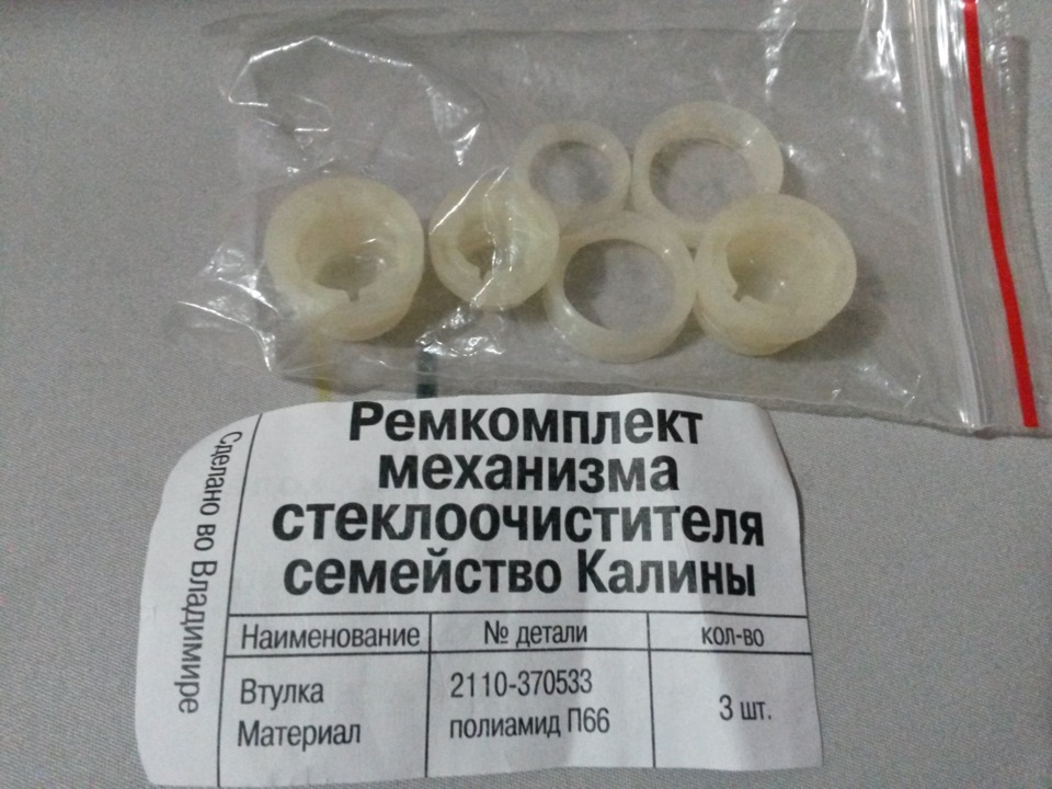 Всем привет, пару лет назад выпала тяга водительского дворника, добрался до неё, износ пластиковой втулки. Так как был в пути, одел тягу назад и примотал её пластиковым хомутом к соседней. Проездил год, хомут перетерся и тяга опять выпала. Поставил обратно на два хомута)) сегодня отвалилась опять. Снял тягу, снял втулку, пошёл в магазин, купил ремкомплект от калины, там три втулки, две большего диаметра, одна меньше. Вот она подошла как родная. Нужно спилить только направляющий штифт на ней, который не даёт ей сесть до конца и не позволяет защелкнуться стопорному кольцу. Срезал его ножом, прогрел феном, защелкнул на шар. Сто рублей цена вопроса.