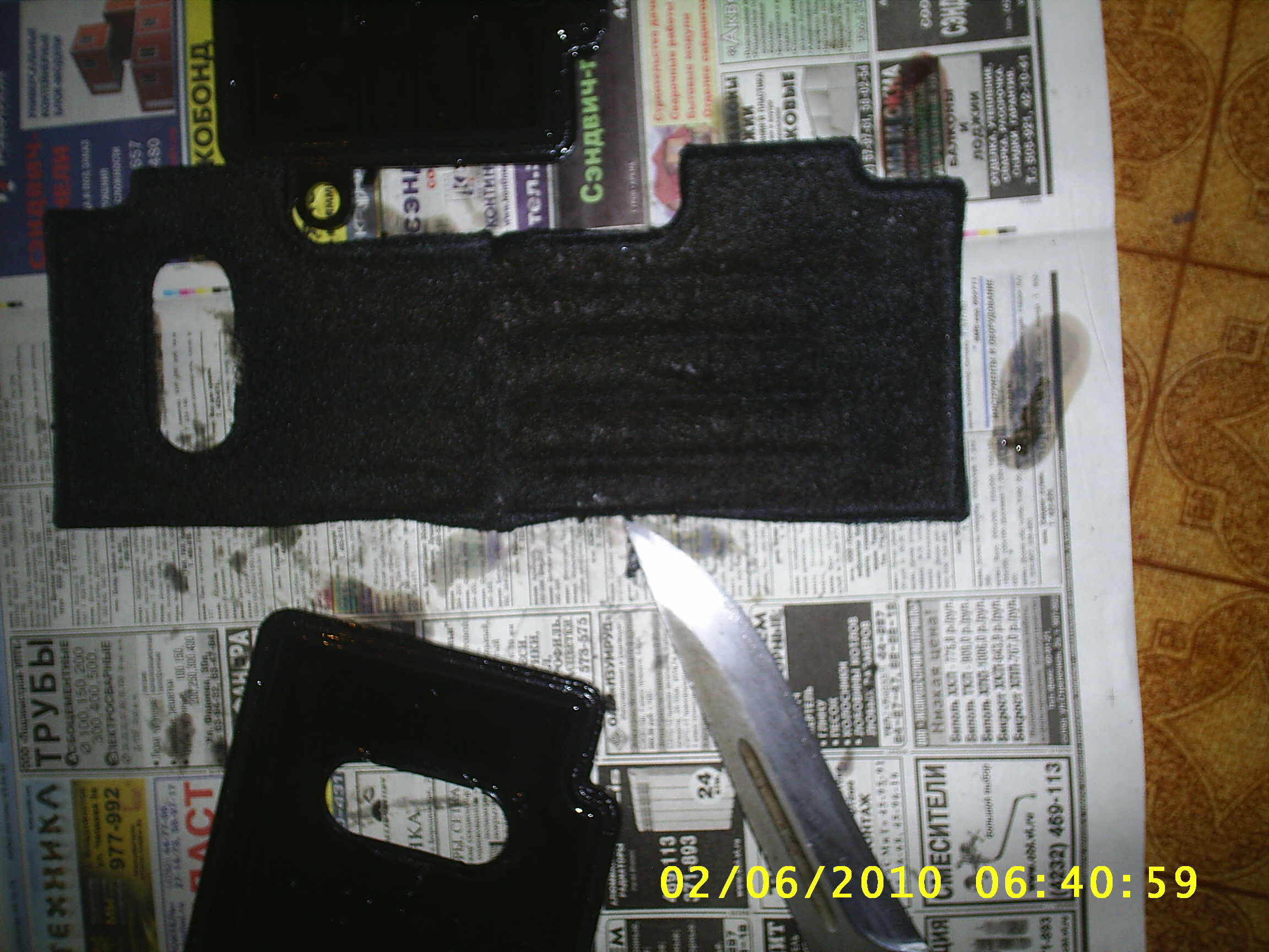 Лезвие ножа указывает на место разрыва фильтра.