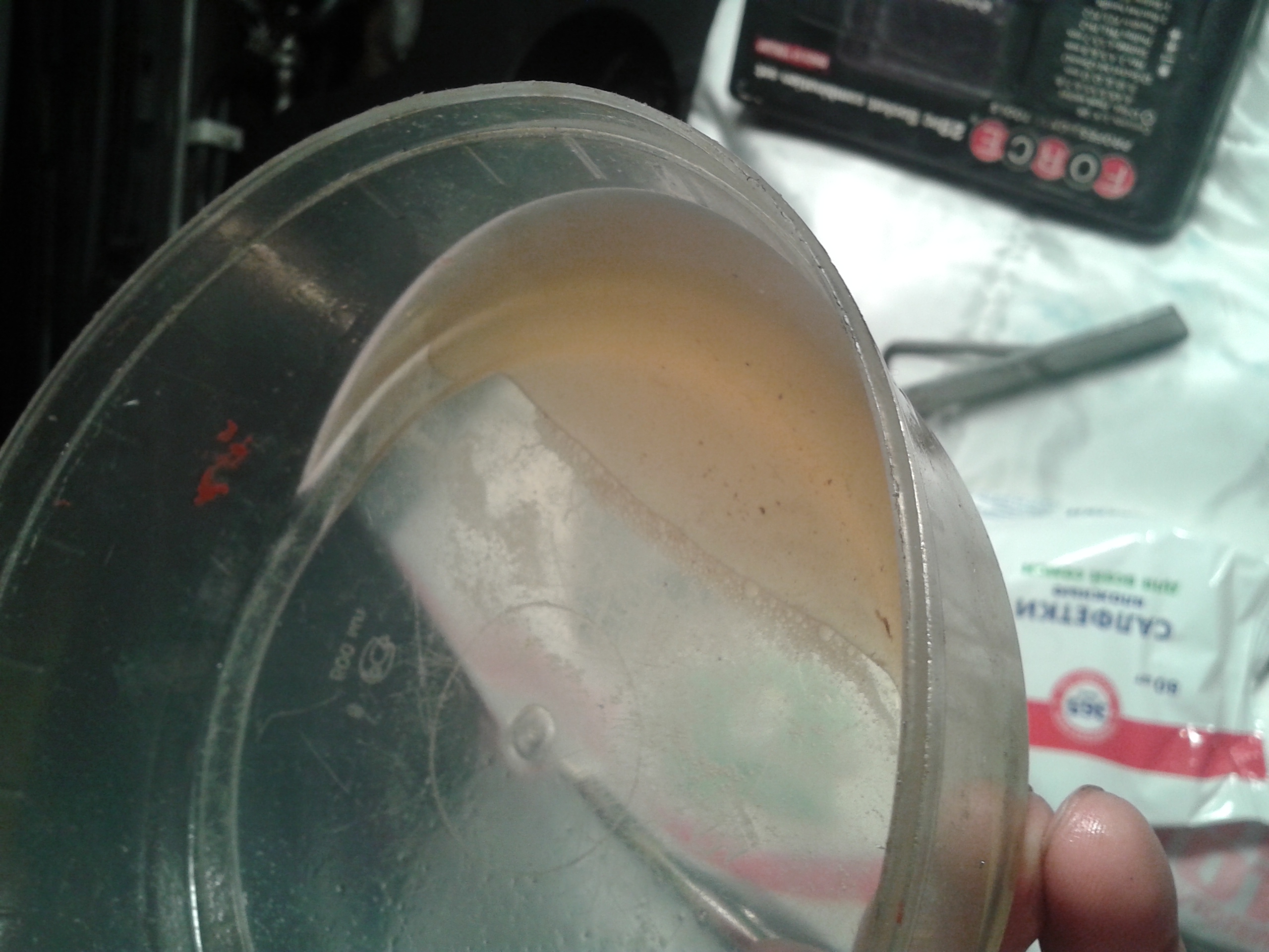 2." жижа в пластиковой таре"- то что слил с фильтра!