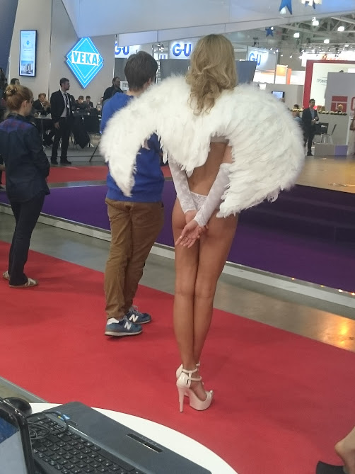 Выставка batimat )) там еще черные ангелы были у них груди больше)