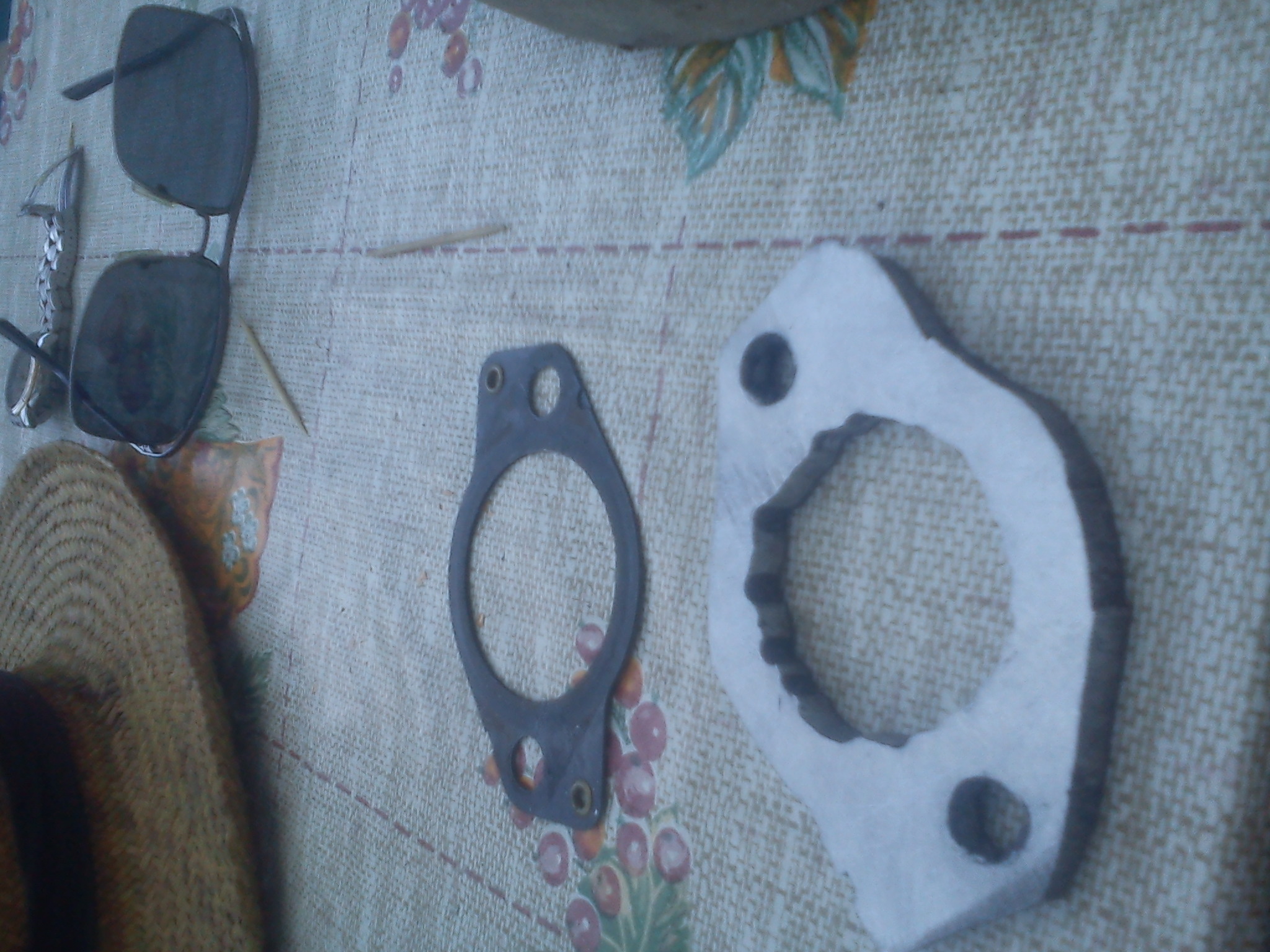 Это уже смонтировано на месте.Не совсем видно на фото,поэтому расписываю :1.штатная прокладка,2.аллюминиевая прокладка,3.паронитовая прокладка В=около 1 мм.,4.заглушка из СТ-3,В=5мм.