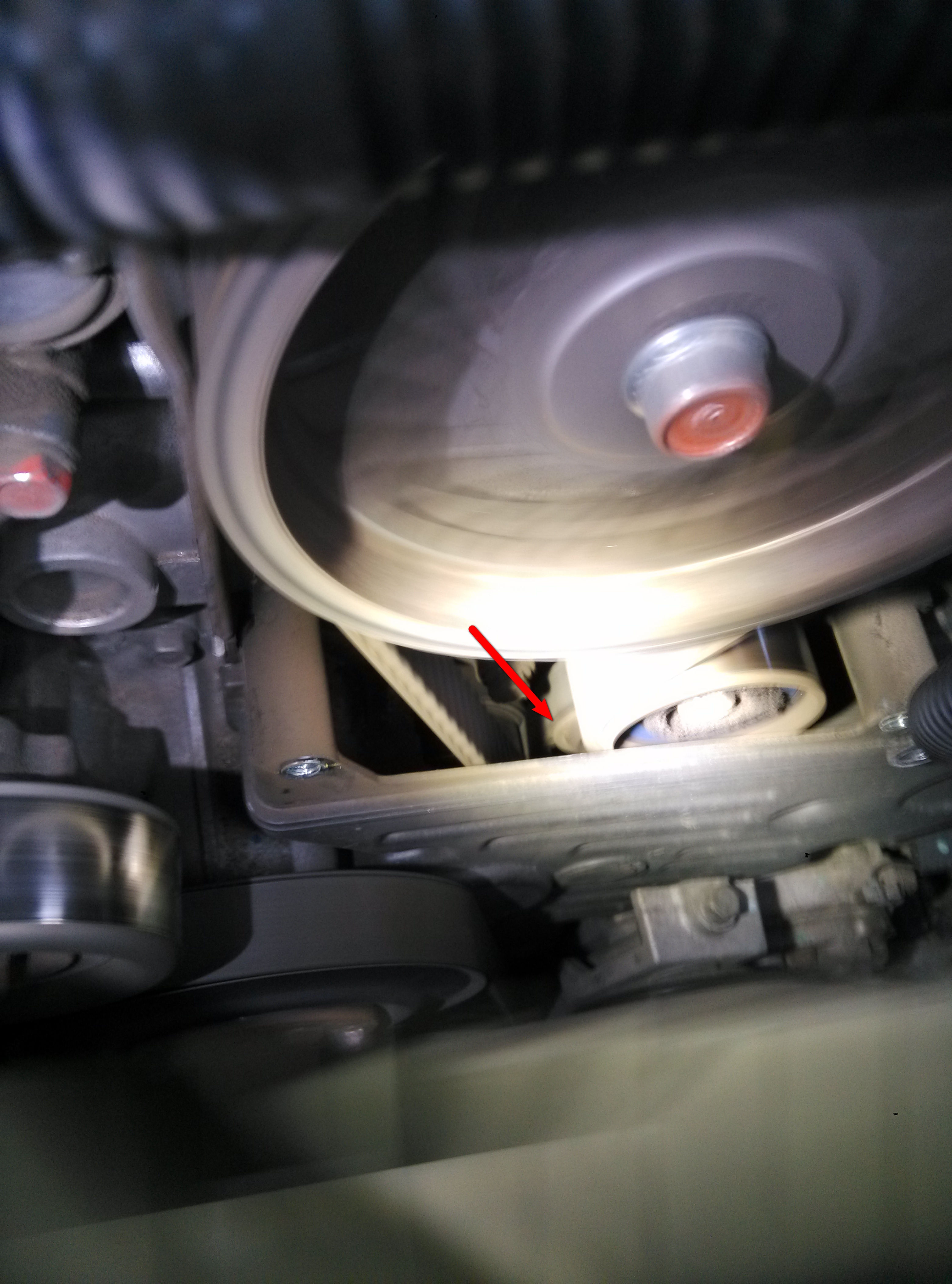 На фото стрелочкой отмечен ремень, который не крутился на заведенной машине. Это балансирный?