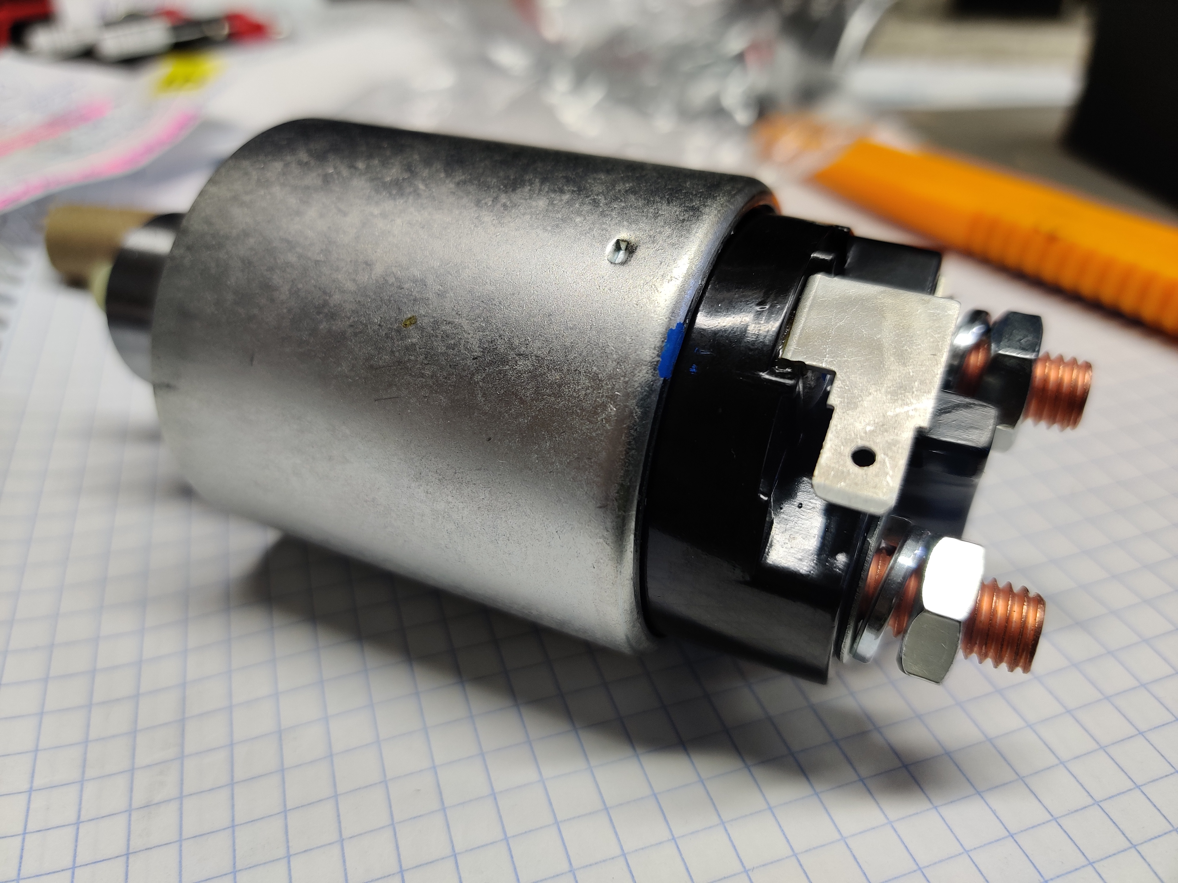 Поехал к ребятам в мастерскую по ремонту стартеров и генераторов , достали мне из закромов родины реле , нужной формы , нужного качества , такого уже нет . Реально крутая качественная весч , видно было сразу что деталь сделана качественно. Сказали что это лучшее что может быть сейчас . Что ж ., поставил , все четко )