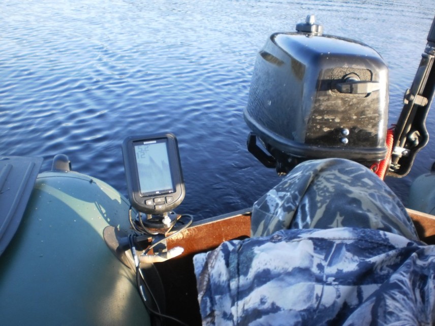 Для поиска рыбных мест дорожкой были использованы ПВХ лодка, простенький Хамминбёд на транец и китайский двухтактник HDX 4 силы.