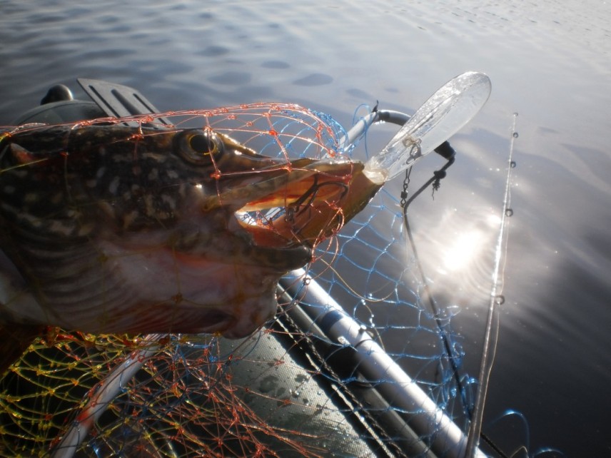 Щуки облюбовали ямы глубиной от семи метров, поэтому пришлось их выдёргивать оттуда глубинными воблерами вперемешку с донной проводкой блёсен "Черноспинок", брала нежадно и, оказавшись в подсачнике, сразу же выплёвывала приманку. Позабавил "криворотик" с нестандартной нижней челюстью.