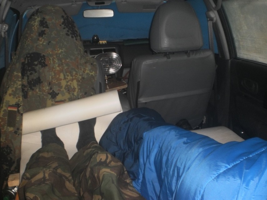 После вечерней трапезы, в порядке подготовки к глухоосенним ночёвкам в машине, решили посмотреть как это будет выглядеть в натуре