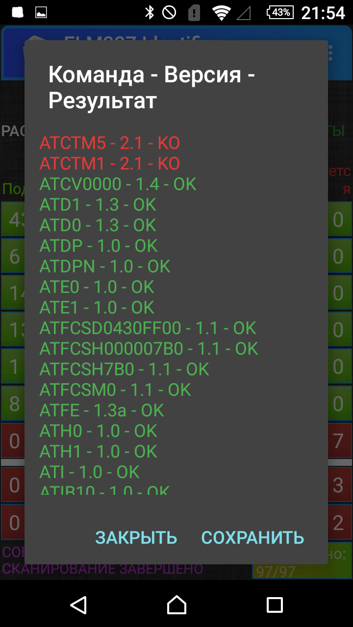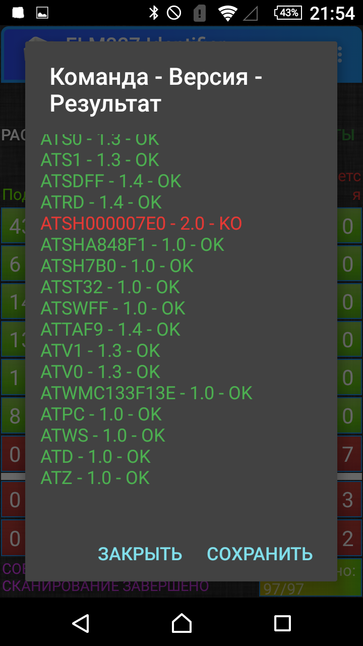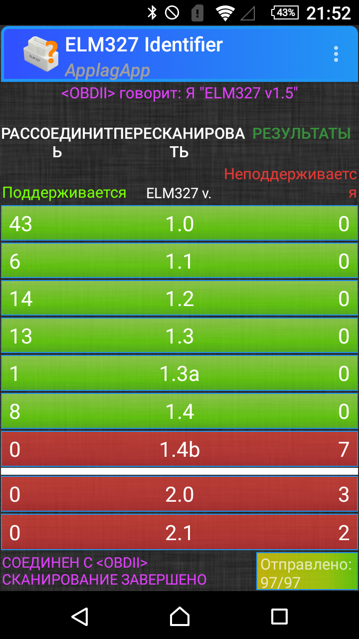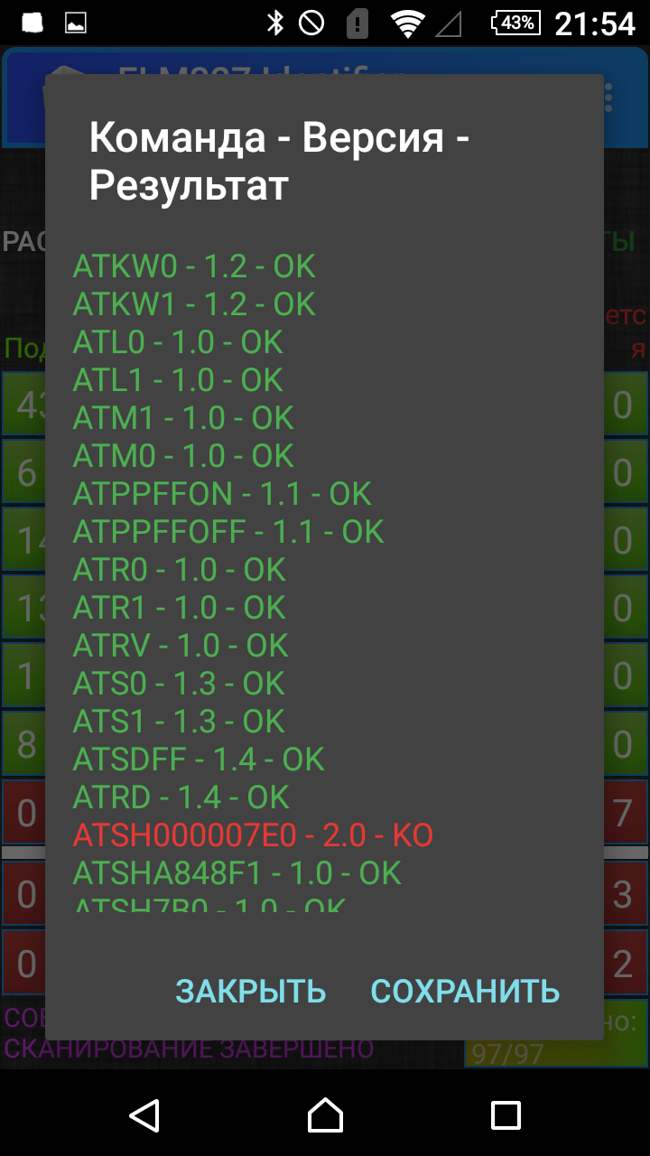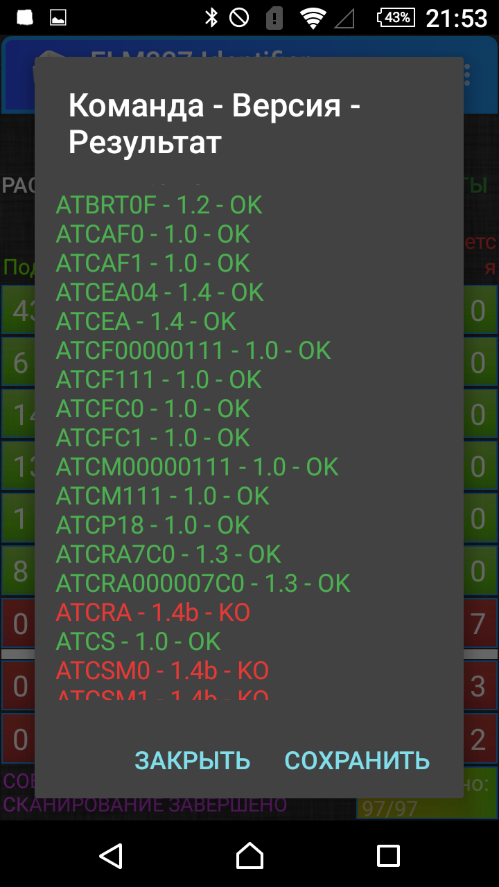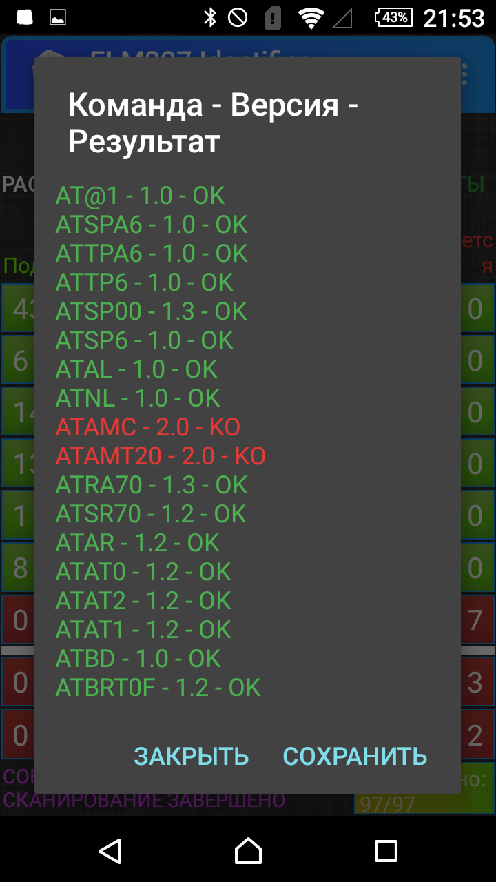 Вот что получилось.cintakc писал(а):Попробуйте проверить адаптер программой ELM327 Identifier