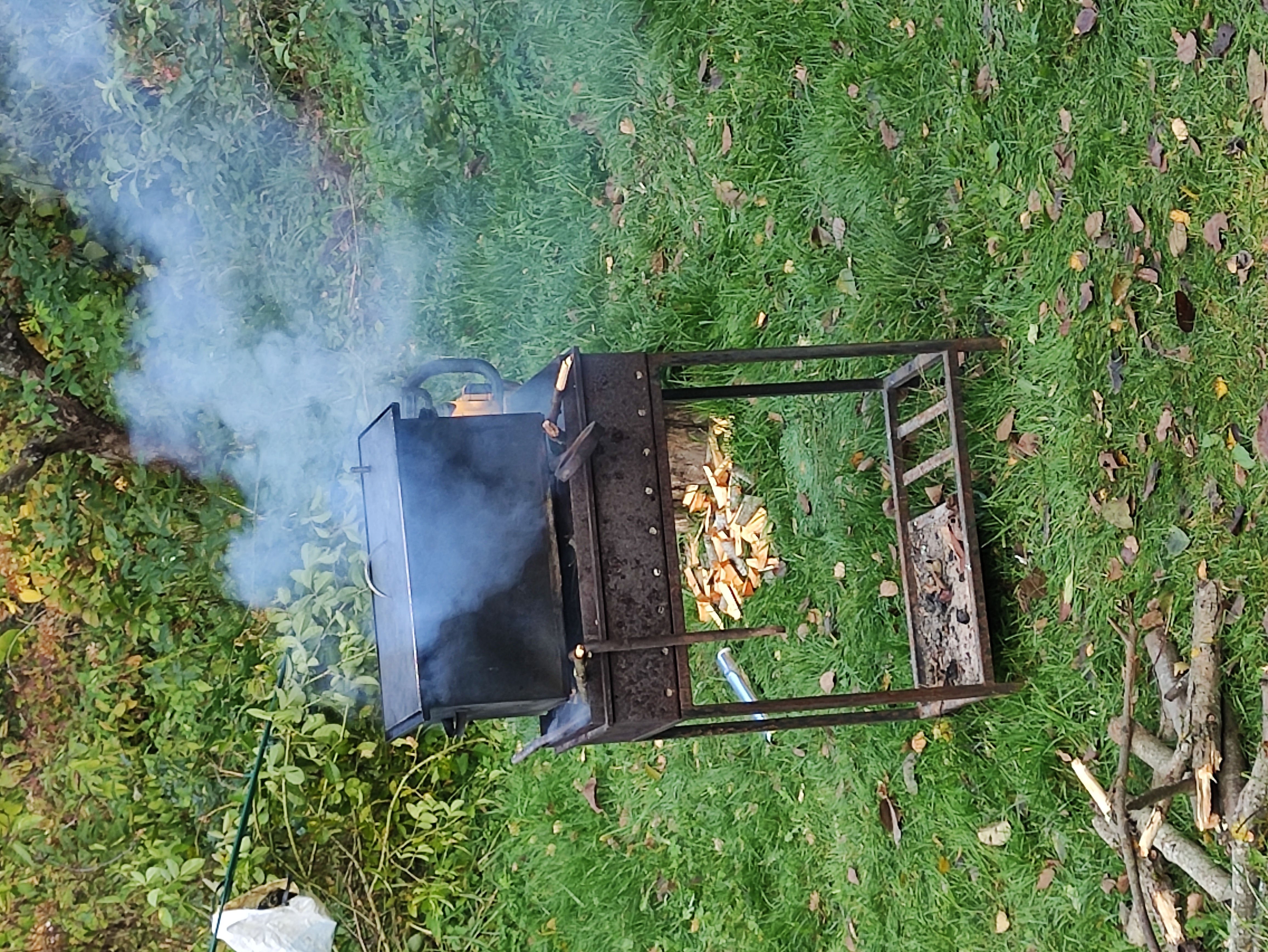 я копчу на крупных щепках ольхи видно за мангалом