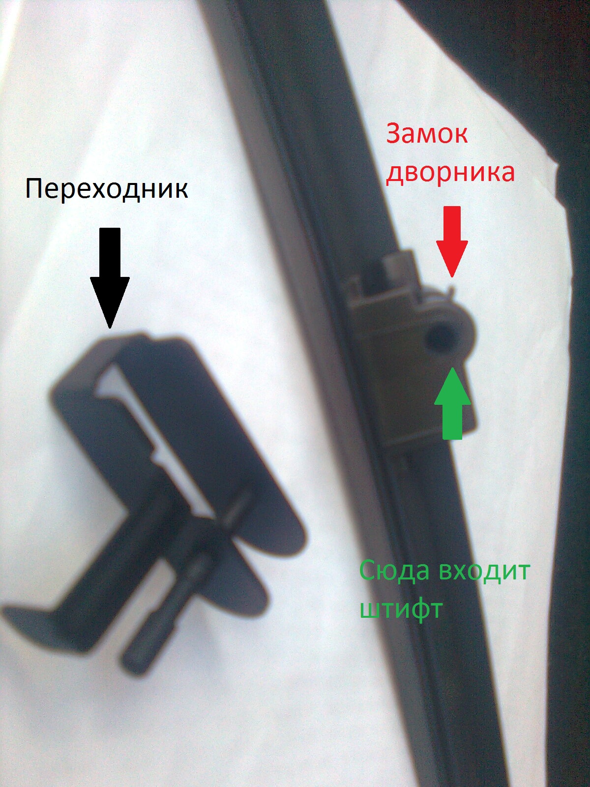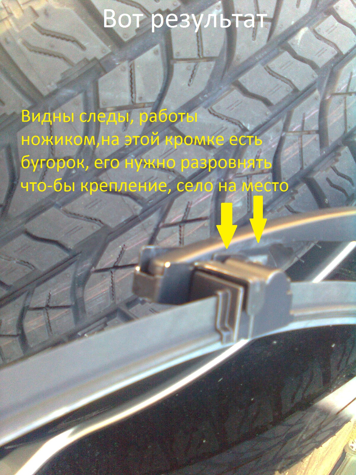 4.Берем ножик или напильник, и выравниваем место посадки переходника, стачиваем по чуть чуть, лучше не переборщить. Во время этой операции придерживаете рычаг щетки стеклоочистителя, а не то будет бить по стеклу , нещадно