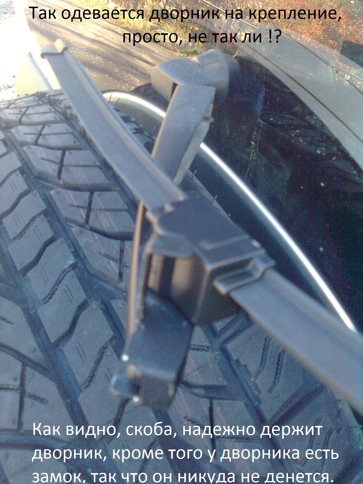НО! На ней боковое крепление с четырьмя разными переходниками в комплекте! Вообщем ни один переходник на падж не подходит, у Вас на поводке заднего дворника какое крепление??