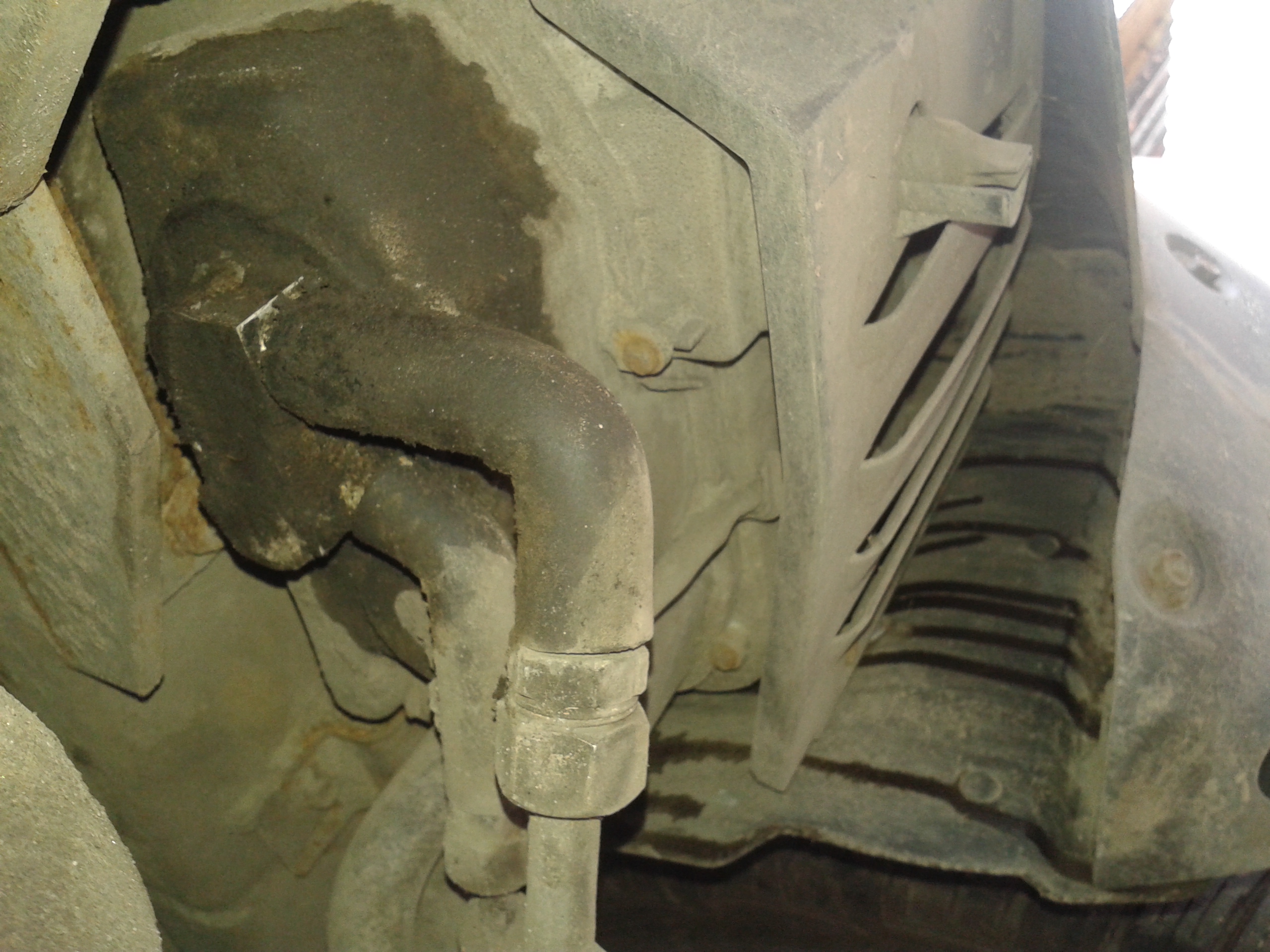 Мужики, привет! Подскажите плиз, сегодня заглянул под машину и увидел там вот "это". Вопрос, откуда может "потеть"?(уровень антифриза в норме). Спасибо.