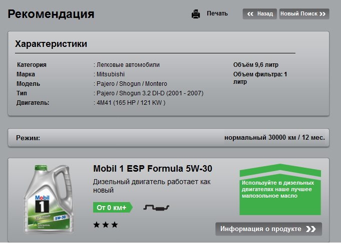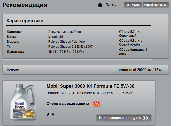 Там же на их сайте можно воспользоваться подбором масла, вот что у меня получилось. Не совсем то, что надо, но лучше чем ОД подобрал. Вернее ОД не будет подбирать масло для каждой машины - это надо сколько масел держать в уме и на складе....