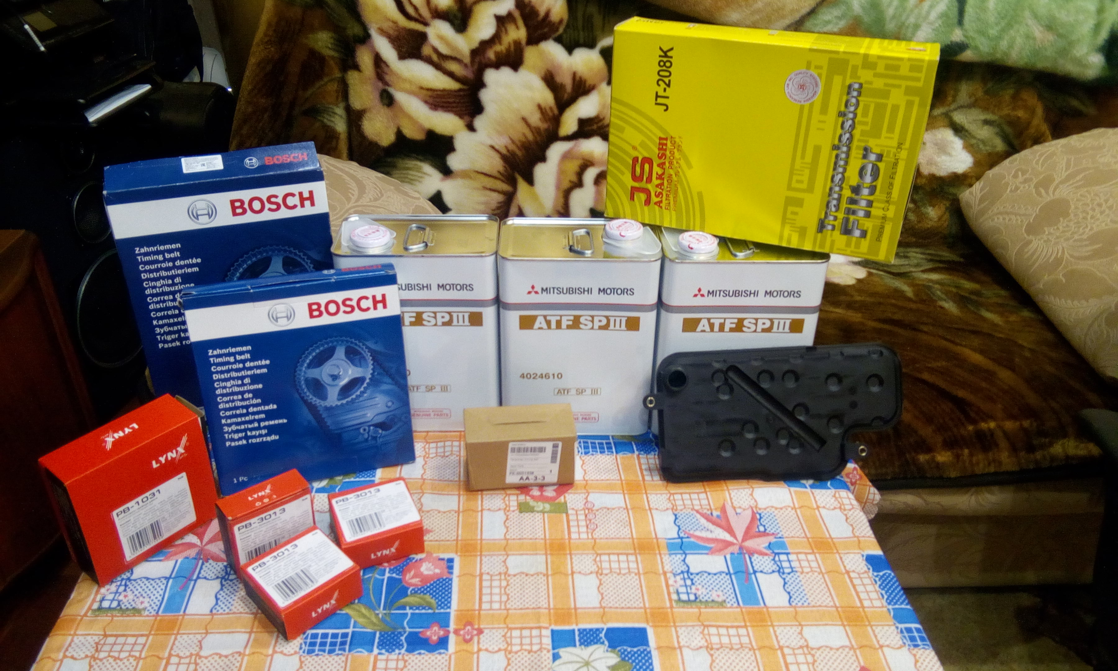 Короче - наконец-то всё пришло, запчасти я имею в виду, сильно задержали 3 дня гидронатяжитель ремня ГРМ и был параллельный заказ на АКПП - масло и фильтр - фильтр шёл долго. Сегодня всё оптом всё же получил. Фото выкладываю.