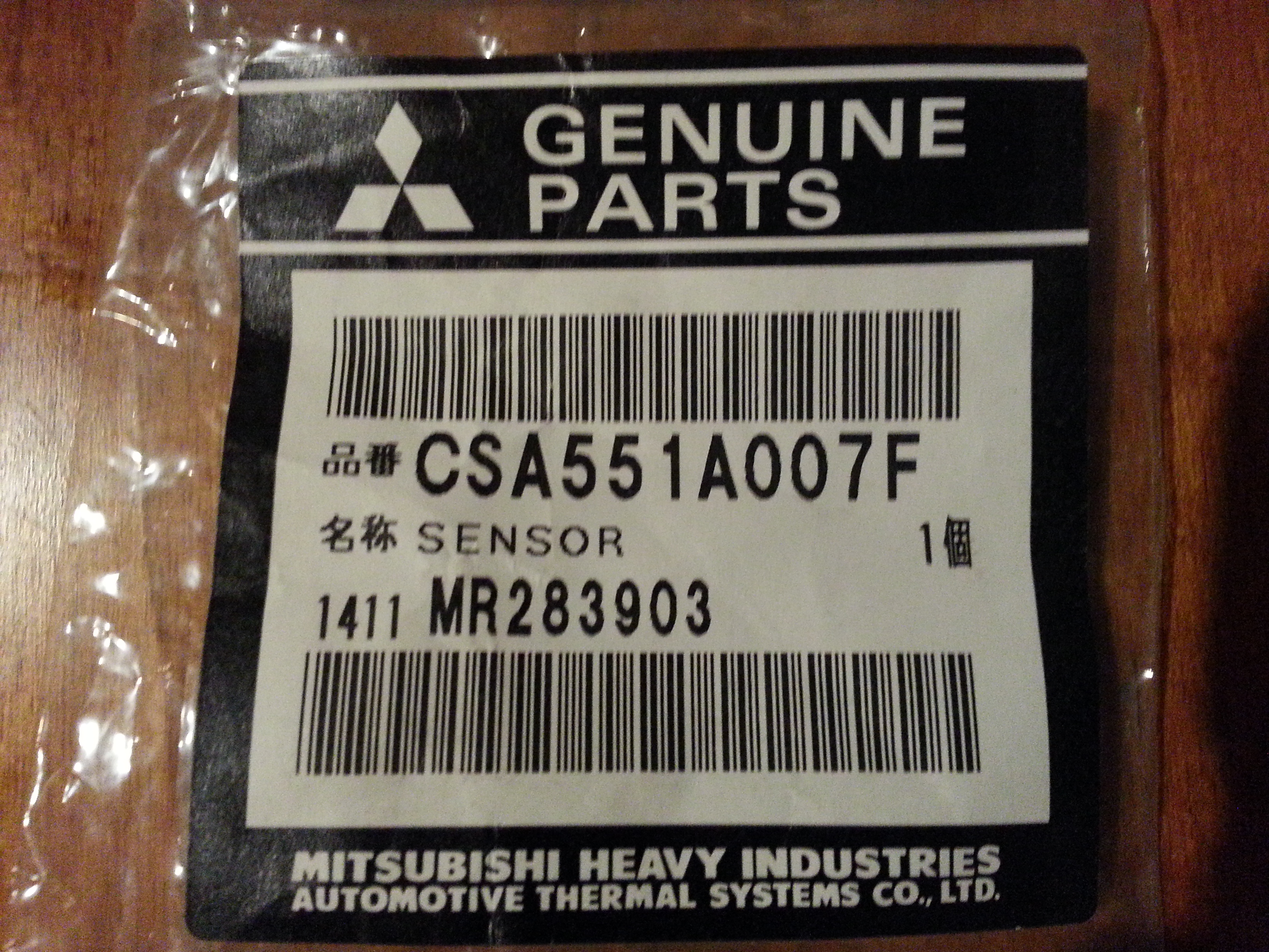 Поставил я этот датчик, купил CSA551A007F стоимость 550 руб. это тоже самое но под новым номером производителя, даже если вы закажете MR283903 за 1200 руб. Вам скорее всего придет CSA551A007F, фото упаковки ниже. Теперь работает отлично, холодный воздух больше не дует.VKAM писал(а):Да.Andreu писал(а):Я у себя найти не могу, есть только в бампере. я на 11 странице фото выкладывал с пустой фишкой, это не для него?mehanik писал(а):вроде на радиаторе кондея...