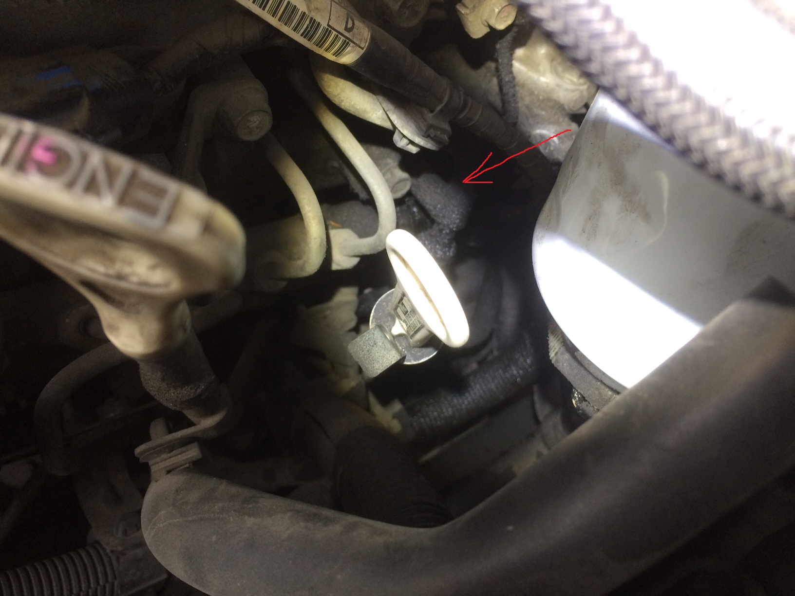 Всем привет. Недавно приобрел паджери 4. поездил неделю и начал он хандрить. Плавают обороты на хх когда холодный. и иногда на прогретом. на холодную глохнет. Если держать чуток газ, то все норм. Прогреется и перестают глохнуть. Иногда скачок оборотов наблюдаю, когда стою на светофоре. Полазил под капотом, там где рампа с правой стороны, все в солярке и грязи. На фото стрелкой указал. Может подсос воздуха есть?