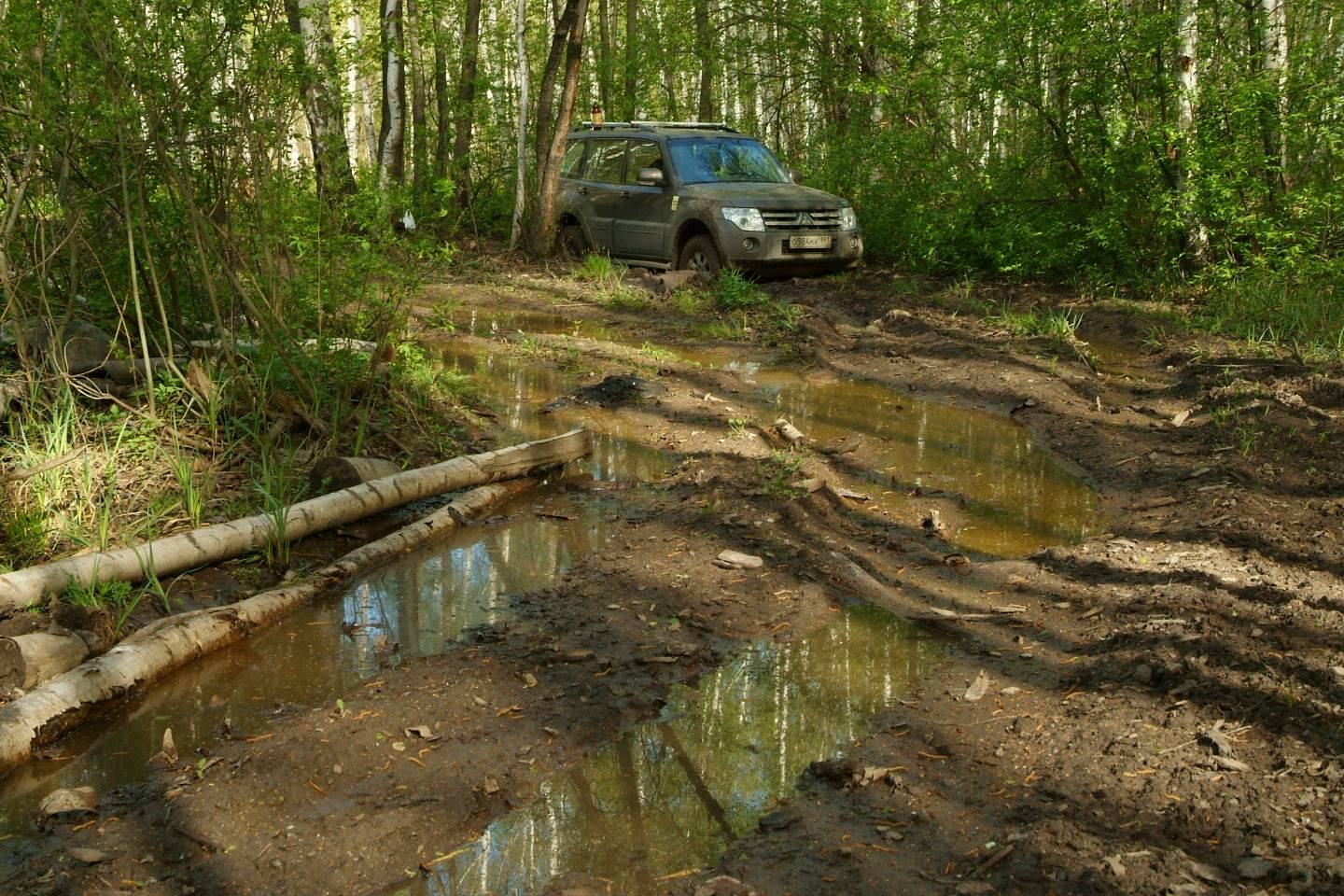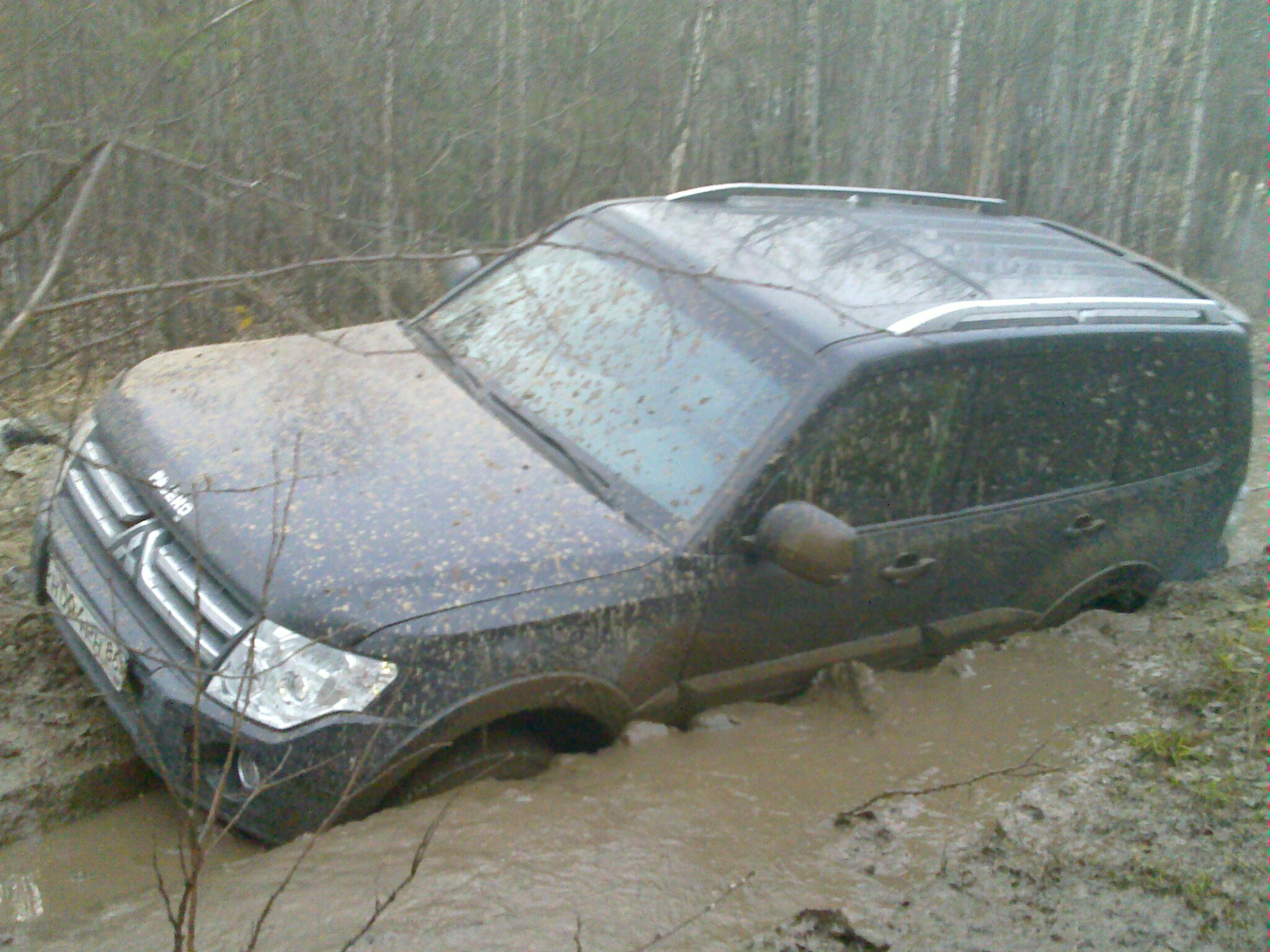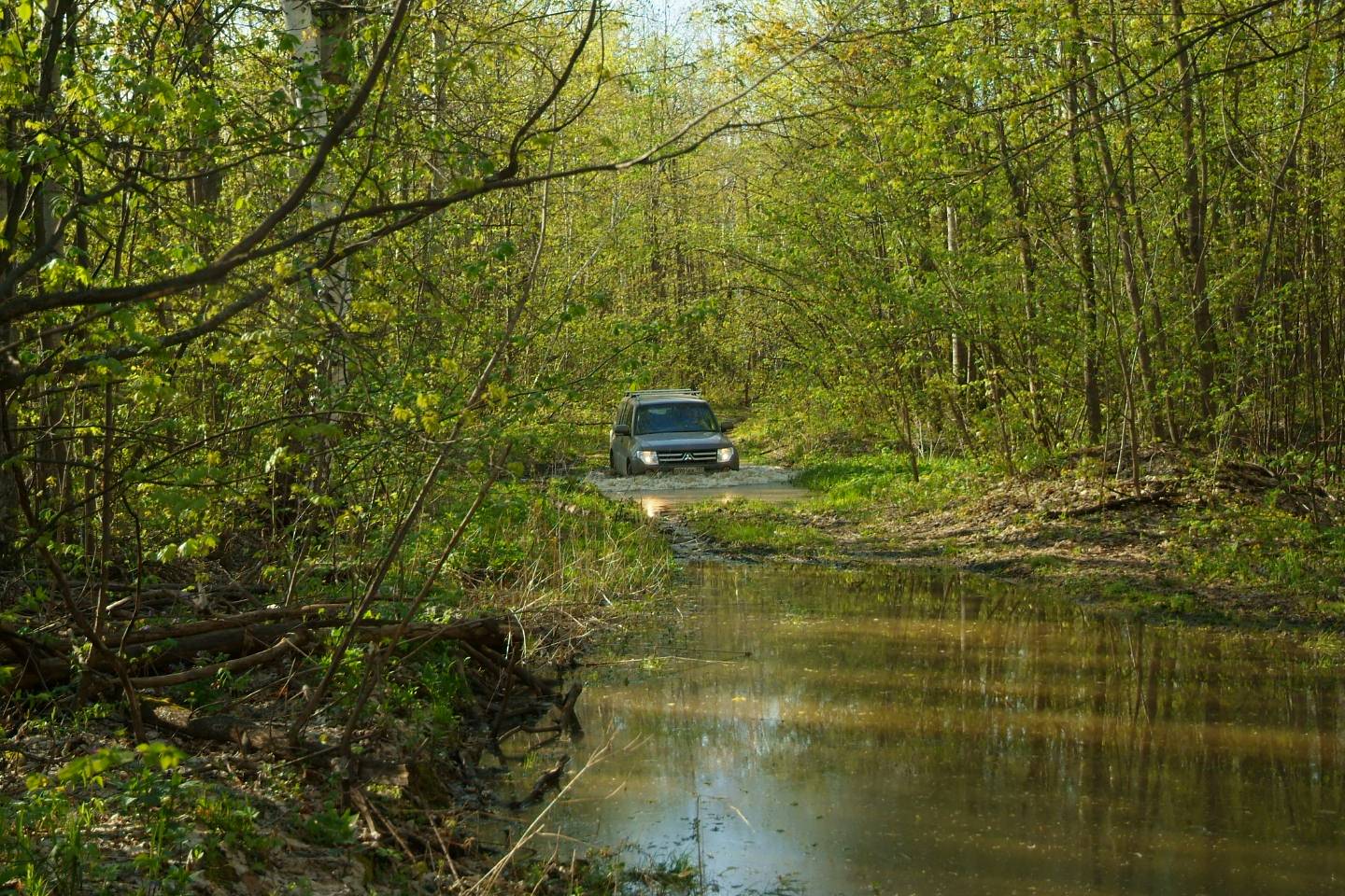 Месяц назад приобрел Паджеро IV. До этого из немоноприводных у меня был тока РАФ4. Опыта внедорожного ноль, подготовка машины такой же ноль. Но через неделю после покупки поехал в Республику Марий Эль, на сплав. Не доезжая до конечной точки есть злое место - ручей, который каждый год доставляет хлопот всем туристам. За 3 метра до русла ручья грунт уже проваливается, после ручья - уже метров 10 жижа под травой.