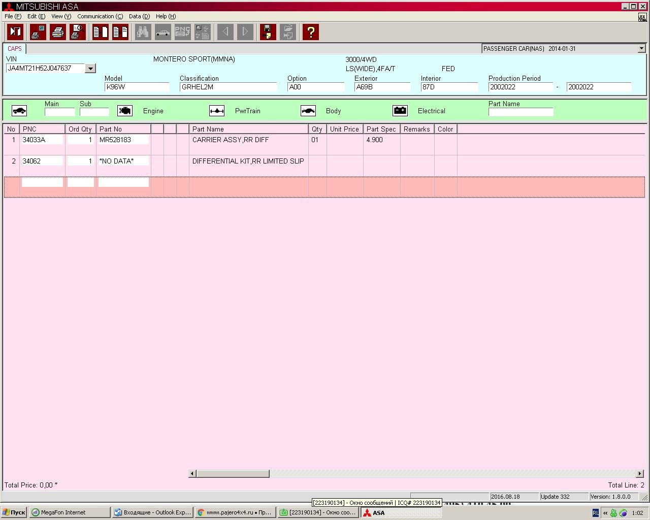 Без LSDVadim Step писал(а):Не будет ли любезен многоуважаемый джин подсказать новичку на наличие LSD. VIN JA4MT31R02J043803 Монтеро спорт 2002.XLS 3.5 бензин MPI. 6G74. AWD американец