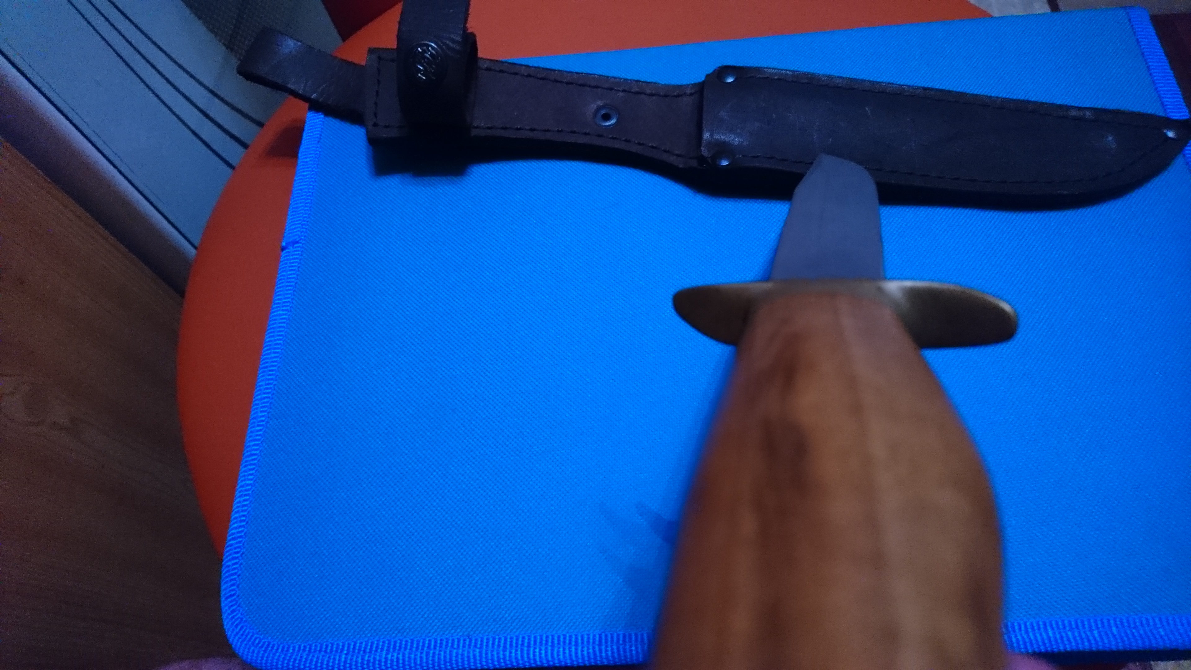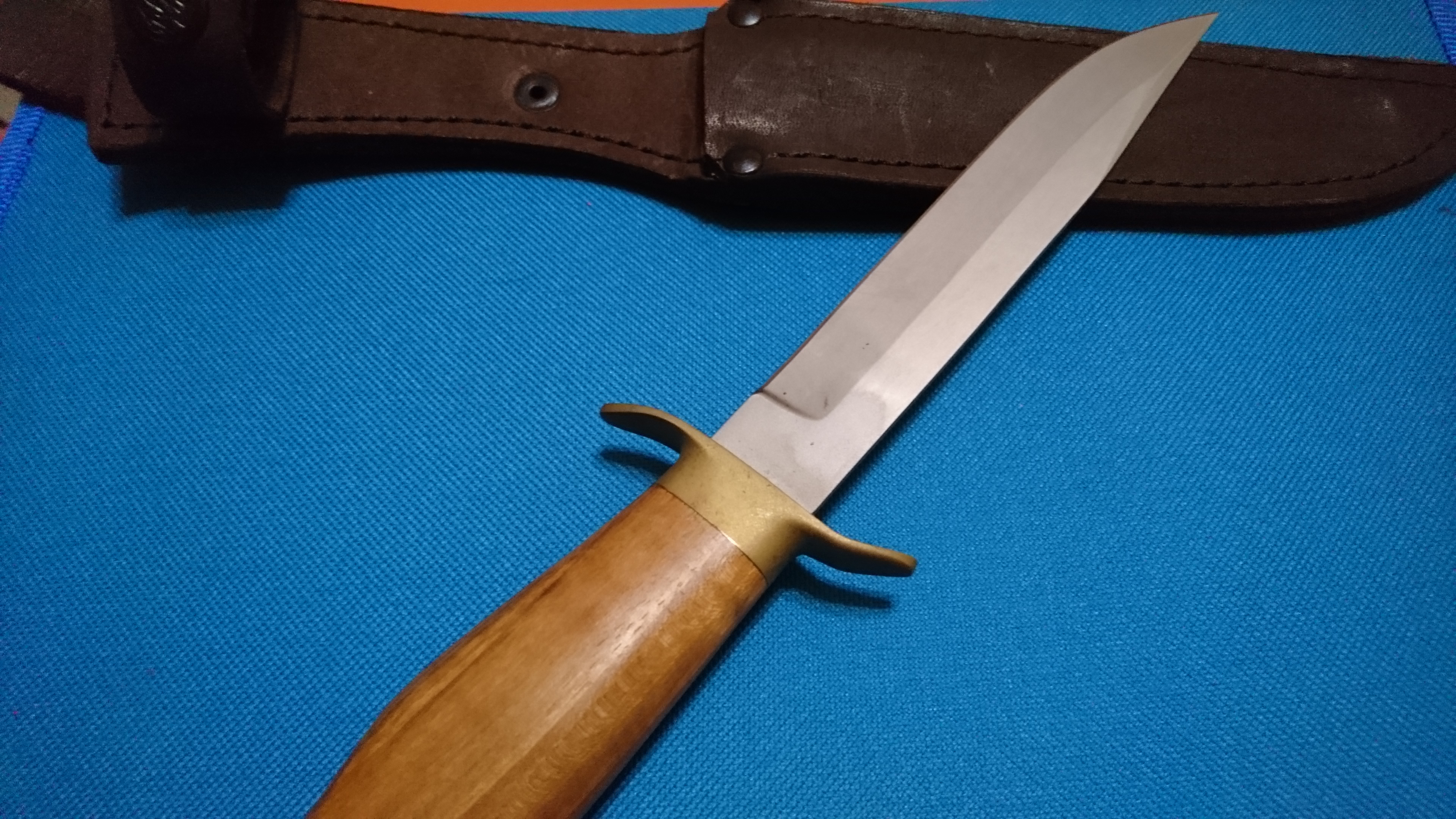 Это нож Штрафбат, Златоустовской компании АиР. Во всяком случае форма рукоятки, гарды и клинка один в один. Толщину клинка но фото не видно. У Штрафбата она 2,4мм, что несколько маловато для ножа спецназа. Надеюсь у этого клинка она по более. Своеобразный изгиб гарды (верхняя часть загнута вперёд, нижняя назад) это фишка именно Златоустовского Штрафбата. Этот нож является репликой знаменитого НР40, у которого загибы на гарде выполнены наоборот. Может спецзаказ в тот же АиР кто то делал, или кто то весьма точно содрал.Володя писал(а):Боевой нож ныне уже несуществующего, к сожалению, спецназа ГРУ ДНР (спецназ Хмурого)