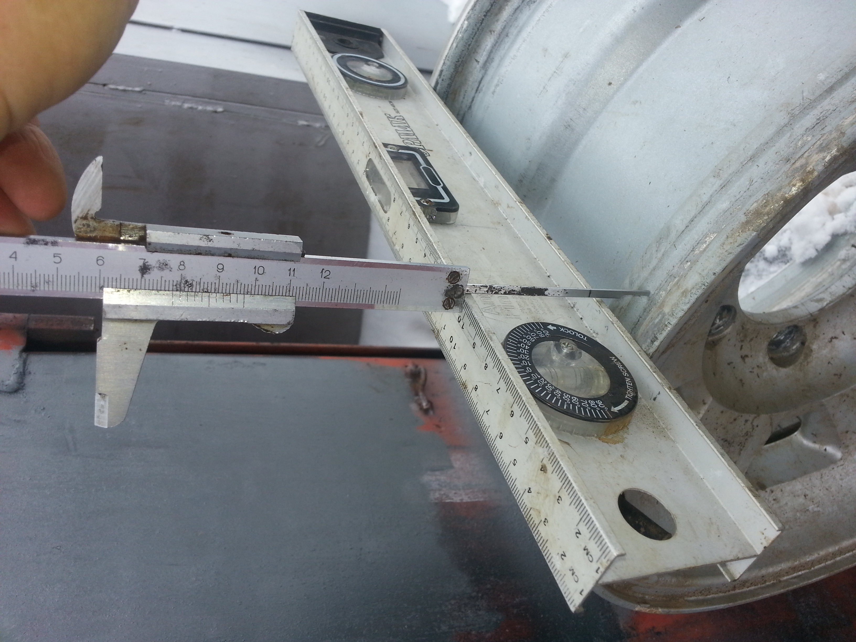 Кидать профиль от внутренней до наружней отбортовке,а от неё мерить...дык где такой штангель найти)