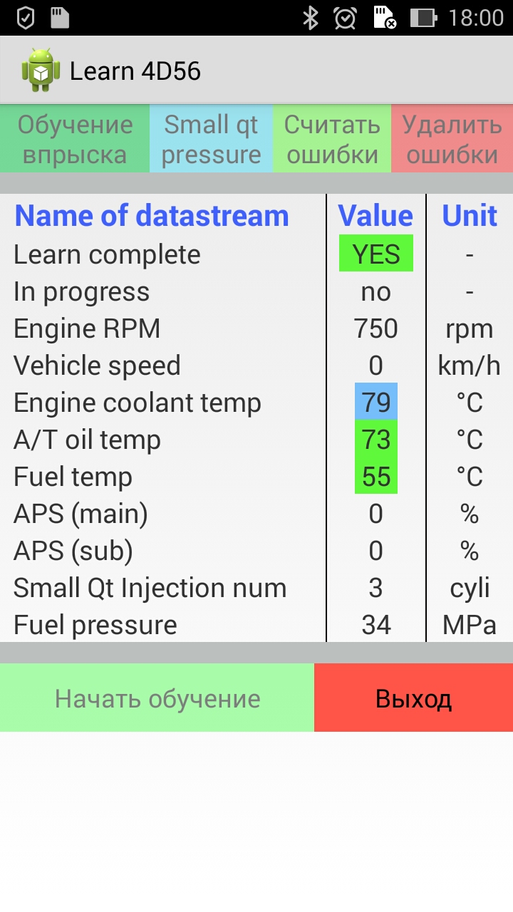 Температура 32 была. Буду пробовать еще.cintakc писал(а):установите более новую версию, в которой контролируется температура топлива,lexus3ds писал(а): Обучение не идет, кидает отказ 22 в логах.