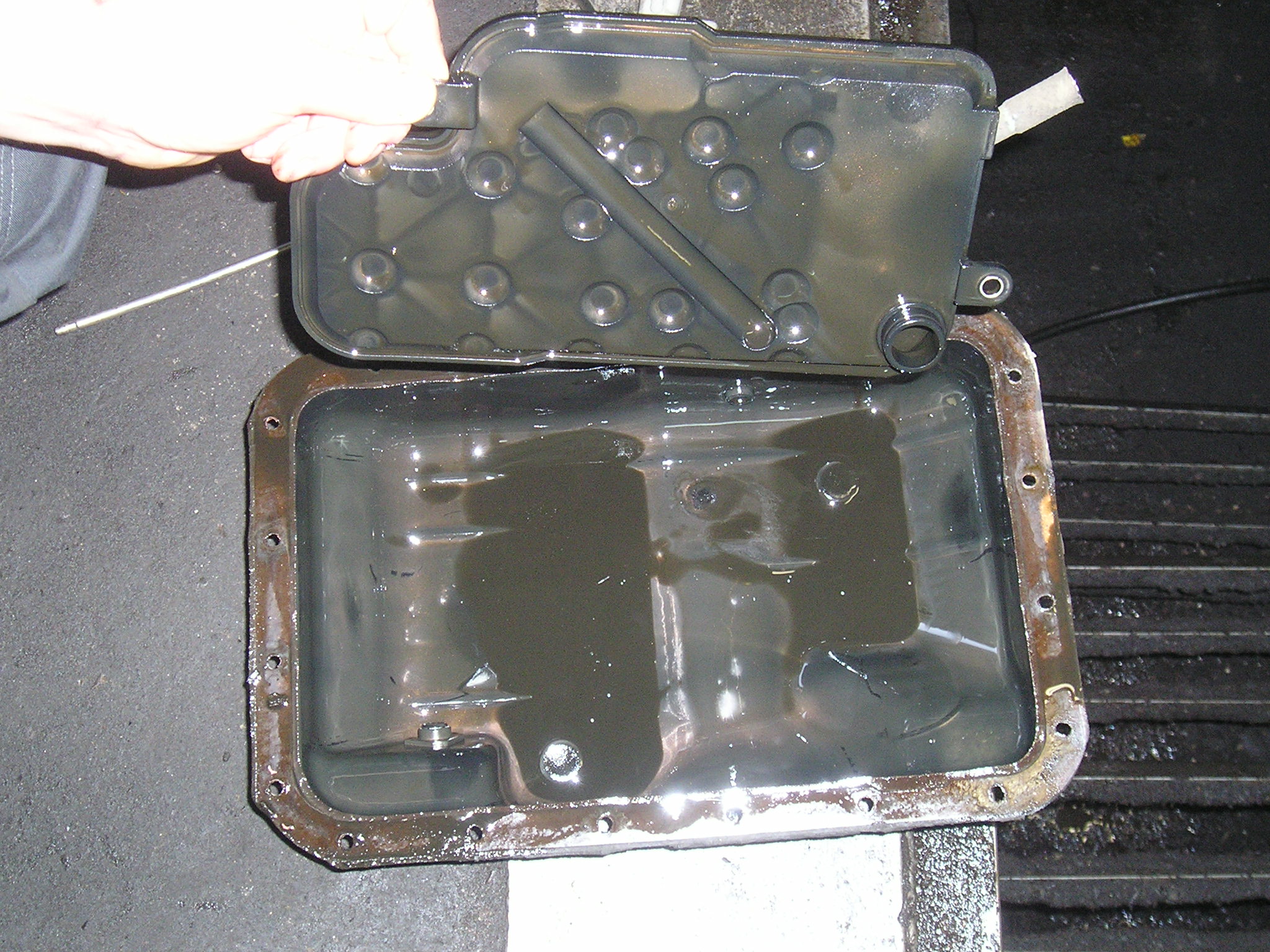 по сути это простой Дексрон3 - только качественный. Прокачали 8литров - пока не пошло чистое масло. Сняли поддон, поставили оригинальный фильтр, новую прокладку поддона. Залили петроканадовскую синтетику Дюрадрайв - http://petro-canada.petrolube.ru/upload ... SSPORT.pdf