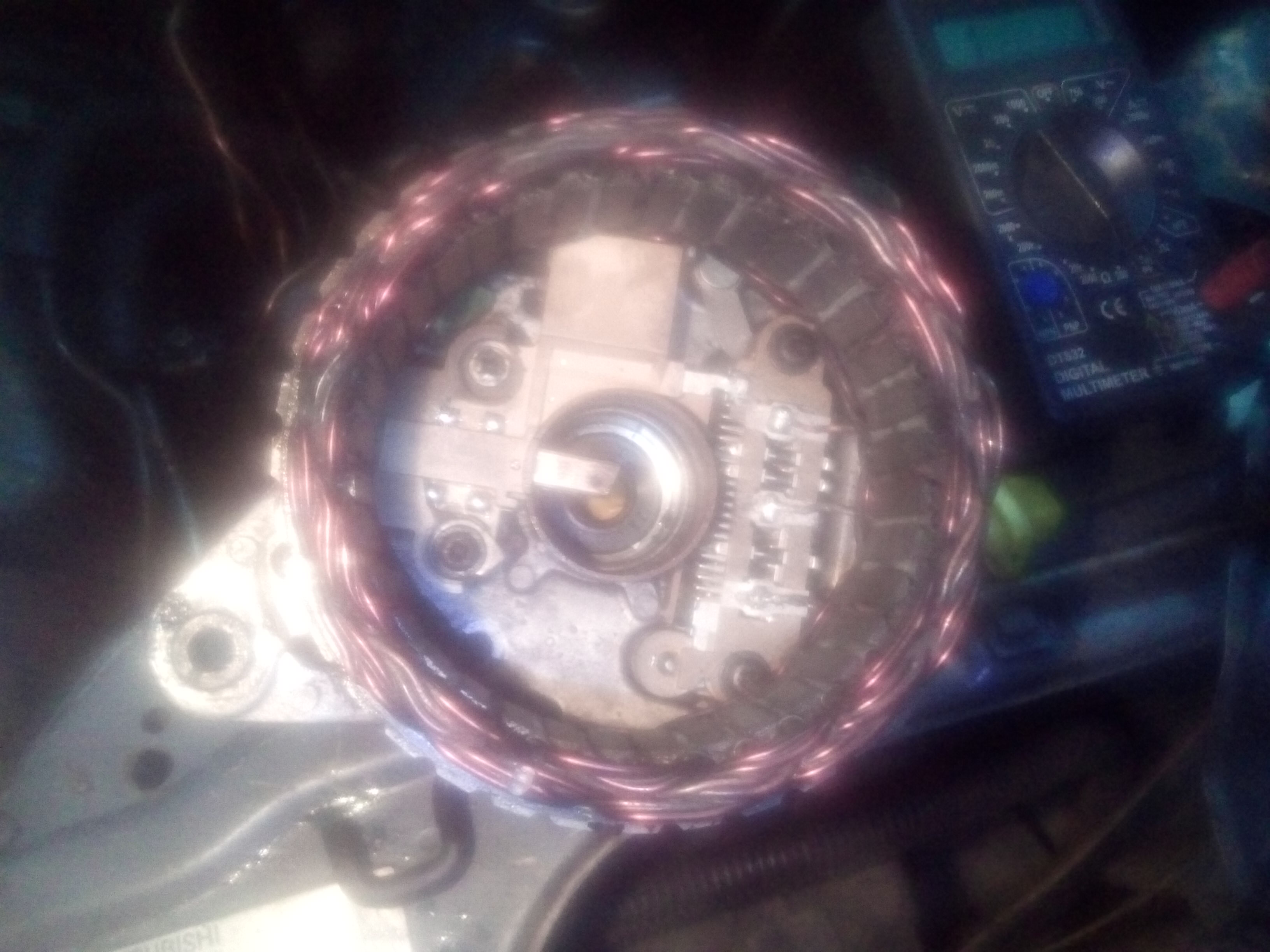 что может быть? писец обмотке?(в местах изоляции обмотки есть плавленные места) как прозвонить? припаянные обмотки, 2 из 3 между собой закороченные, на корпус мультиметр в режиме прозвона (на писк) показывает цифры, сопротивление в Омах не показывает.