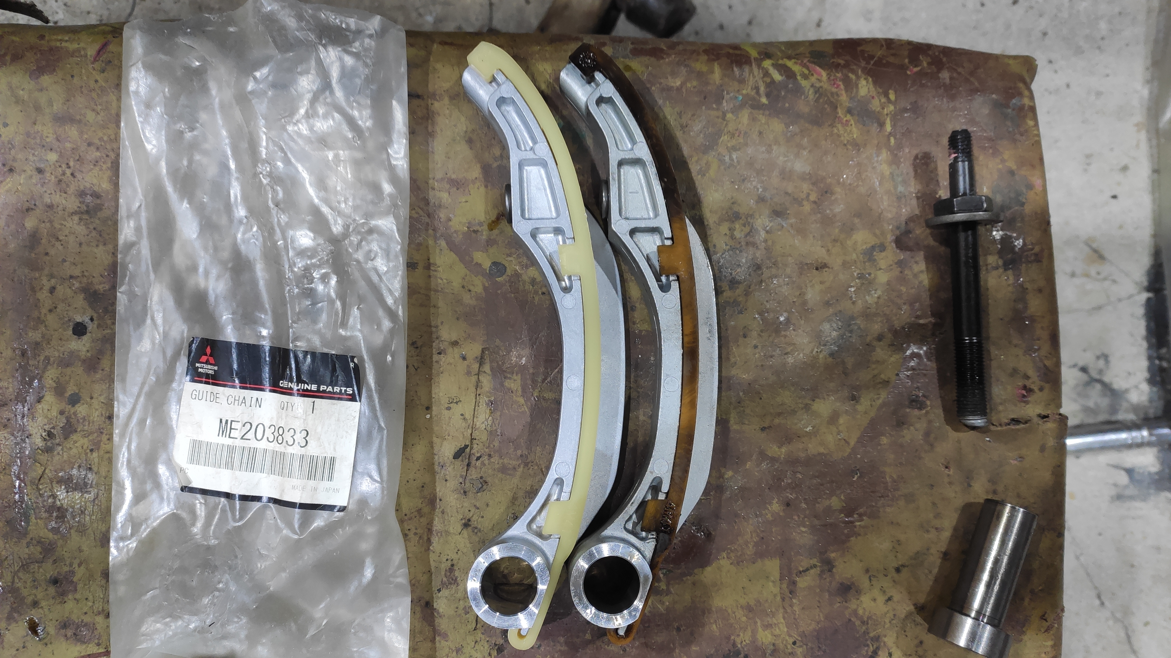 Неделю назад менял интеркулер( спасибо Александру SNOOPER за диагностику) со снятием и промывкой основного радиатора(т.к. уже не просвечивался заодно и кондейный промыть керхером) , снятием вентилятора. При сборке всего обратно и подтянув ремни генератора устанавливал вентилятор прокручивая его за крестовину для удобства как делал уже не раз на протяжении пяти лет, вместе с ремнями прокручивался двигатель( как позже я узнал- в обратную сторону, раньше даже не задумавался об этом). И заинтересовало меня состояние цепи а то мой пробег 190т. и до меня не известно менялась ли она. Начал шарить интернет и наткнулся на эту тему, прочитав страниц 40 пришел в ужас от обратного вращения двигателя с перенатягом натяжителя (хотя впервые крутил не туда на первом году владения) и возможного состояния верхнего успокоителя. Заказал прокладку клапанной крышки, верхний успокоитель и прокладку натяжителя в эти выходные полез в двигатель. Снять крышку на 4 паджере еще то удовольствие. Успокоитель оказался практически без износа, не стал менять. Между ветвями цепей влезает труба диаметром 20мм не болтается и особых усилий не надо что всунуть. Натяжитель живой, выработка примерно на 8 зубе. На передней крышке не видно выпирающего герметика по этому не понятно снималась ли она. Я так понимаю что можно пока не парится с заменой цепи и раз в год (это примерно 40т.км) снимать крышку для осмотра.