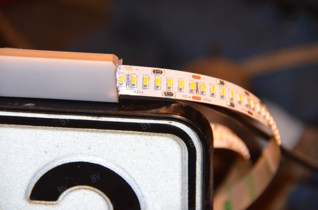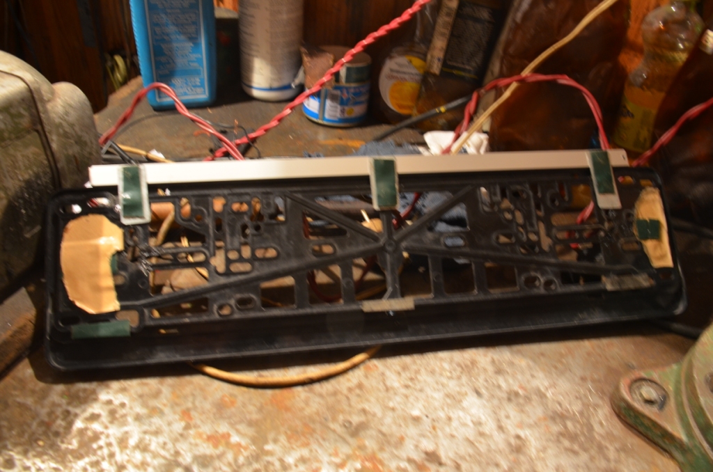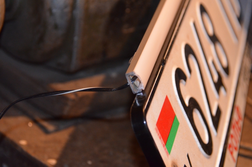 полдня мудохался с алюминием - сделать коробочку с прорезью под диодную полоску (45 см длиной, шириной 1 см) и прорезь сделал, но выгнуть на малых расстояниях не смог. пришла мысль: засунуть полоску в прозрачный пластиковый шланг с внутренним диаметром 1 см, по торцам пробки, три аккуратных полированного алюминия хомута, закрепленных за рамку номера (сзади номера). таким образом, решается еще задачи кроме технологичности выполнения: надежная защита светодиодов от влаги-грязи, и рассеивание света точечных источников