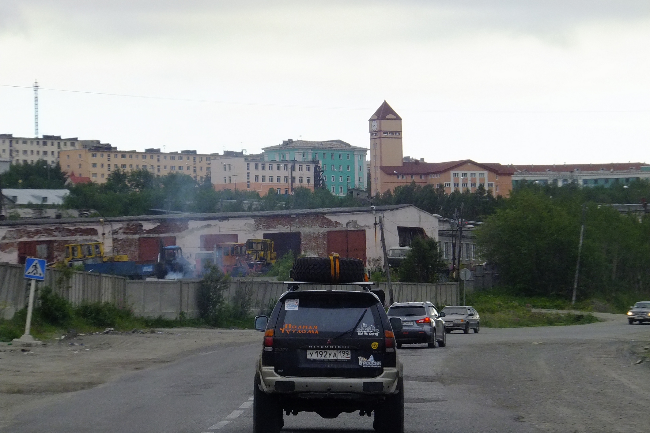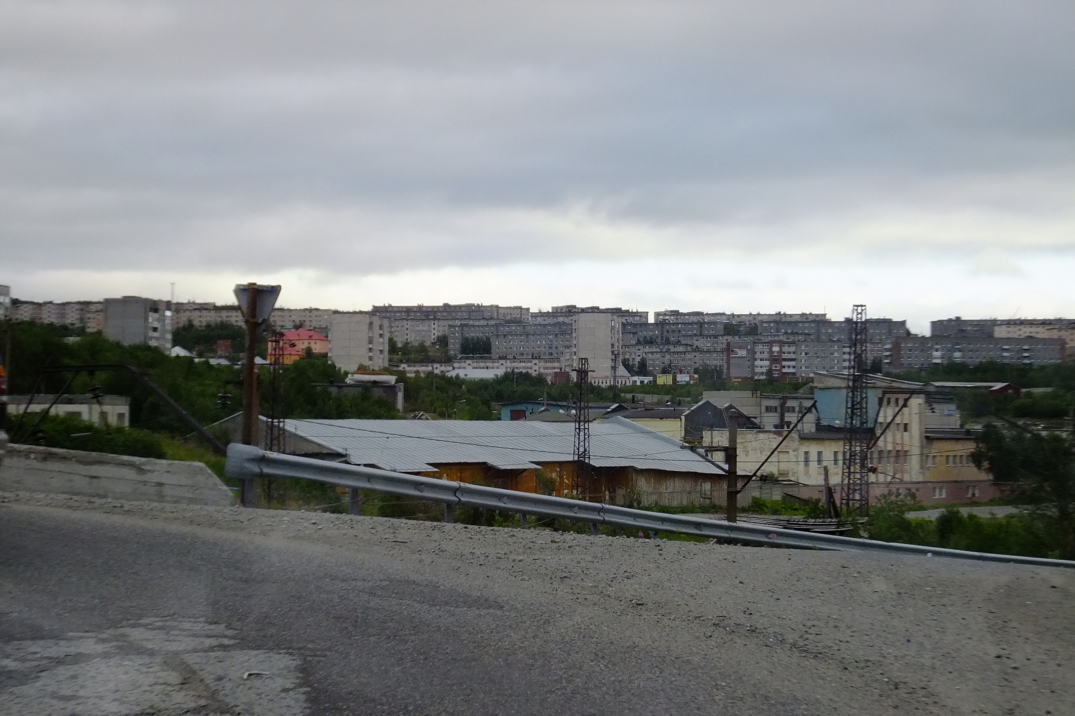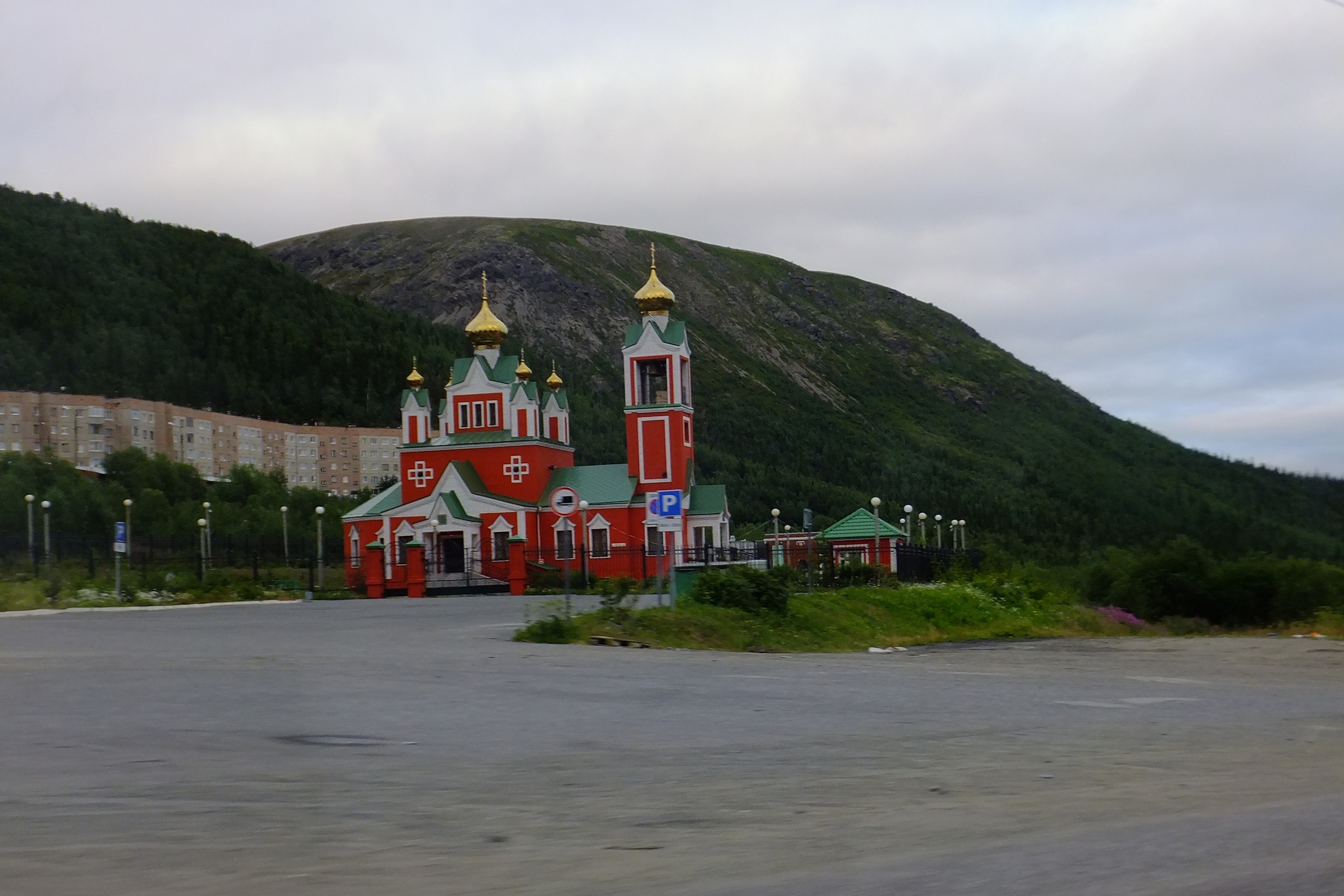 Срань господня.. он страшнее Мурманска!!! Вечер, сумерки кругом голые горы и массив абсолютно серых пятиэтажек! .. Город-кладбище! Хотелось закрыть глаза и не смотреть. .. Чуть погодя нарисовалась небольшая церквушка, довольно ярких оттенков.. почему то хорошего не подумалось, благо останавливаться смысла нет, мы едем на Гольцовое ..