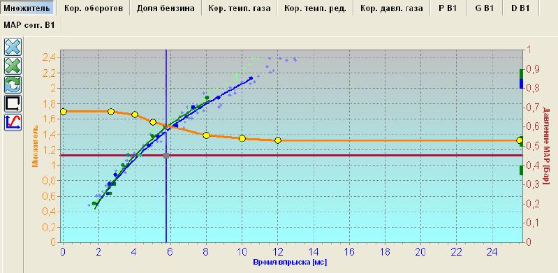 Напомню, в прошлый раз программа выдавала ошибку при попытке автоматической корректировке (предположили что это из-за недостаточных отверстий на форсах). А так же заметил, что вот эти параметры ДО рассверливания были на бензе 3-4, на газу 9-10, а после на бензе 3-4, на газу 4-5.