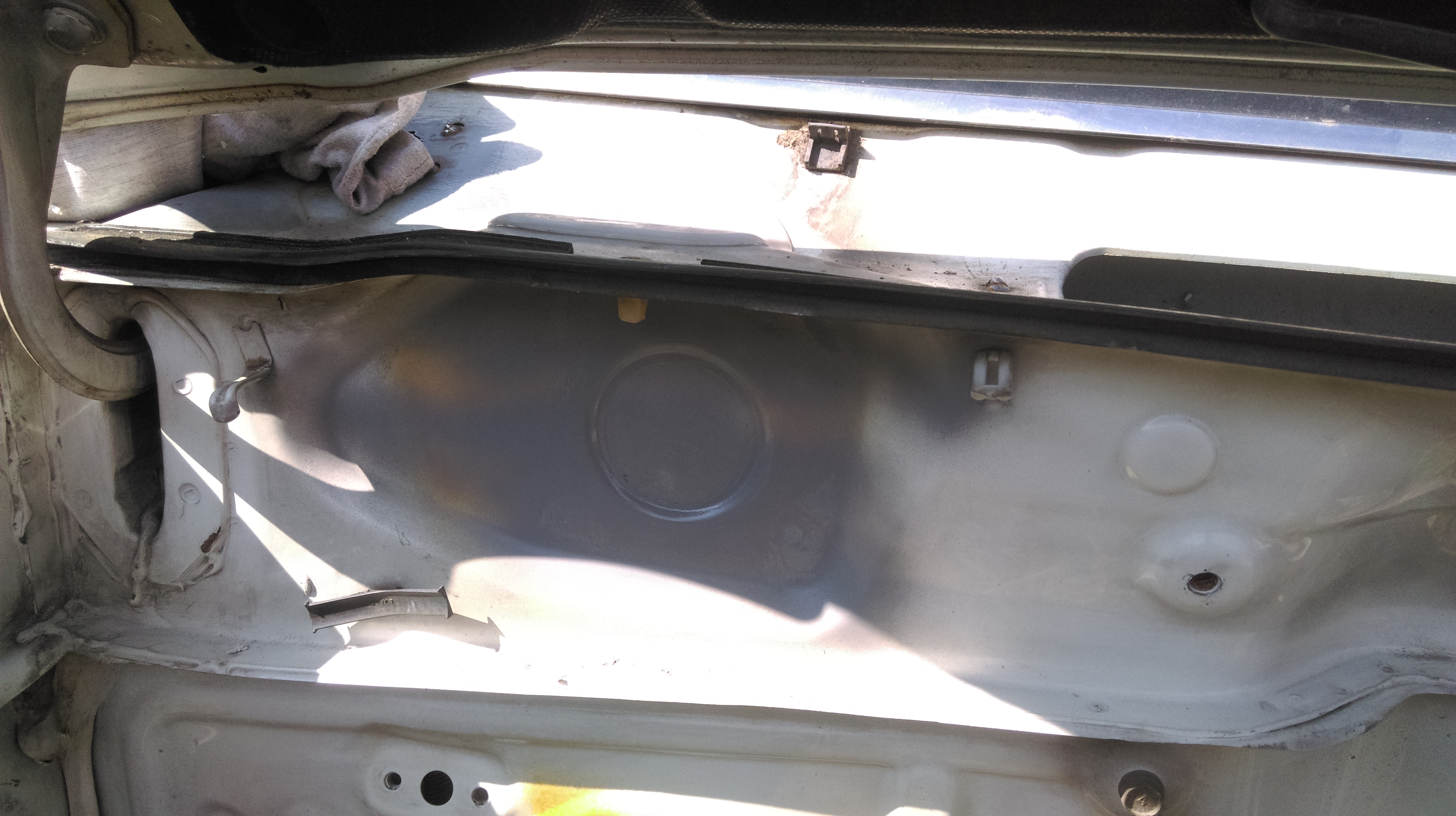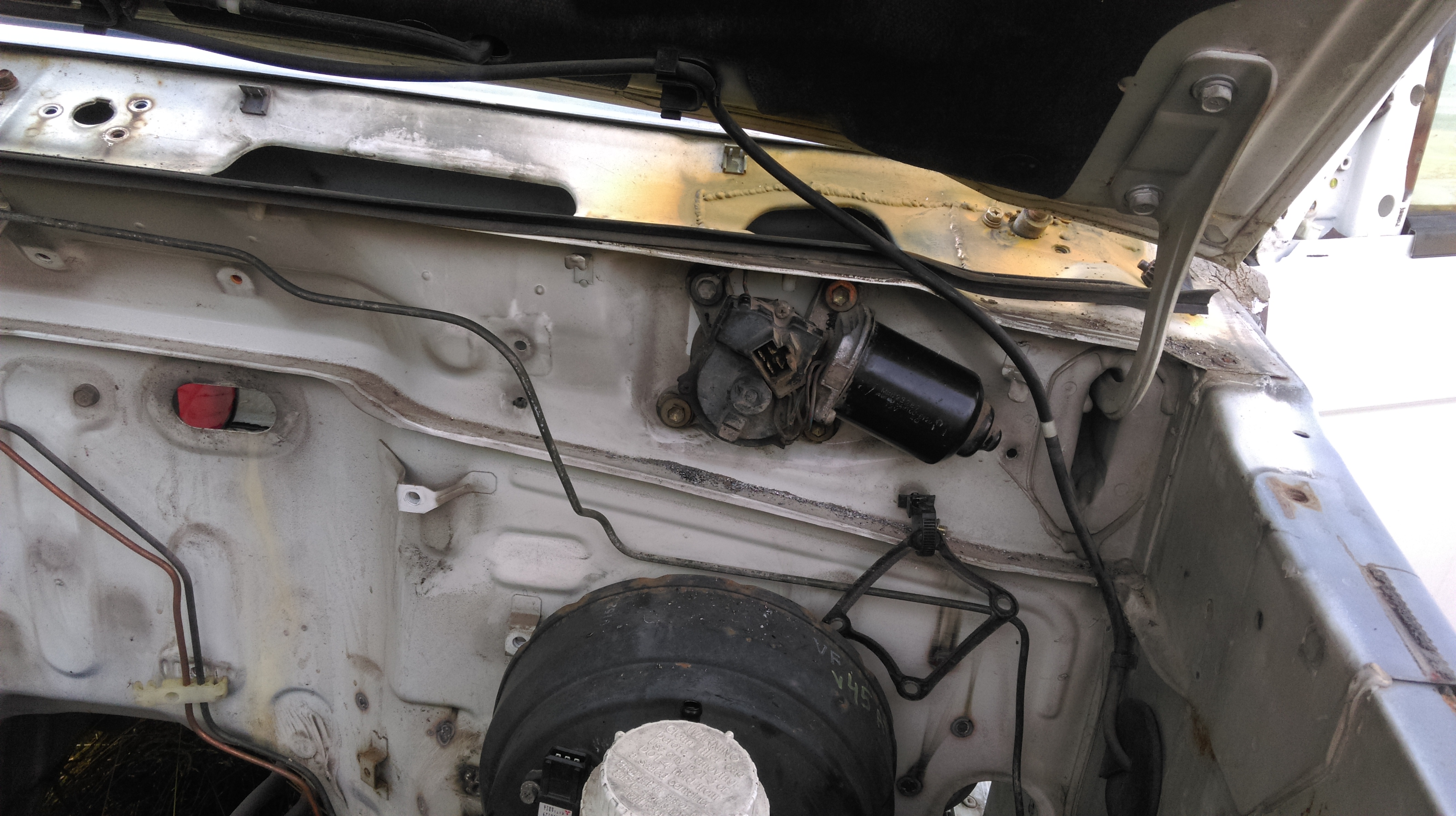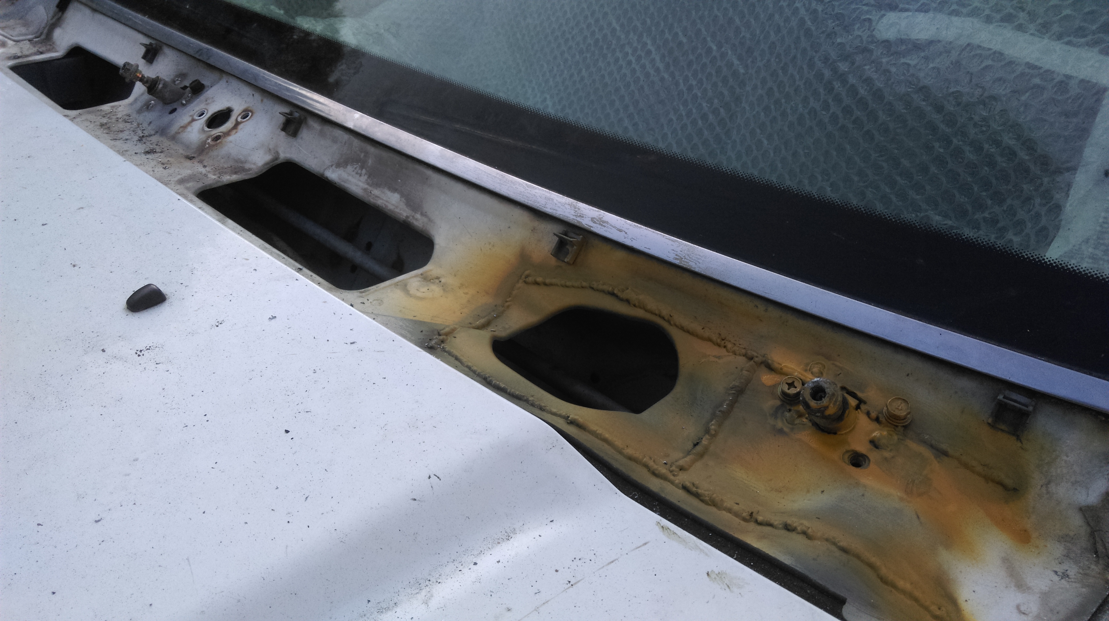Заварил и на 1 раз зашпаклевал дыру под моторчик дворников, где будет табличка с вин номером