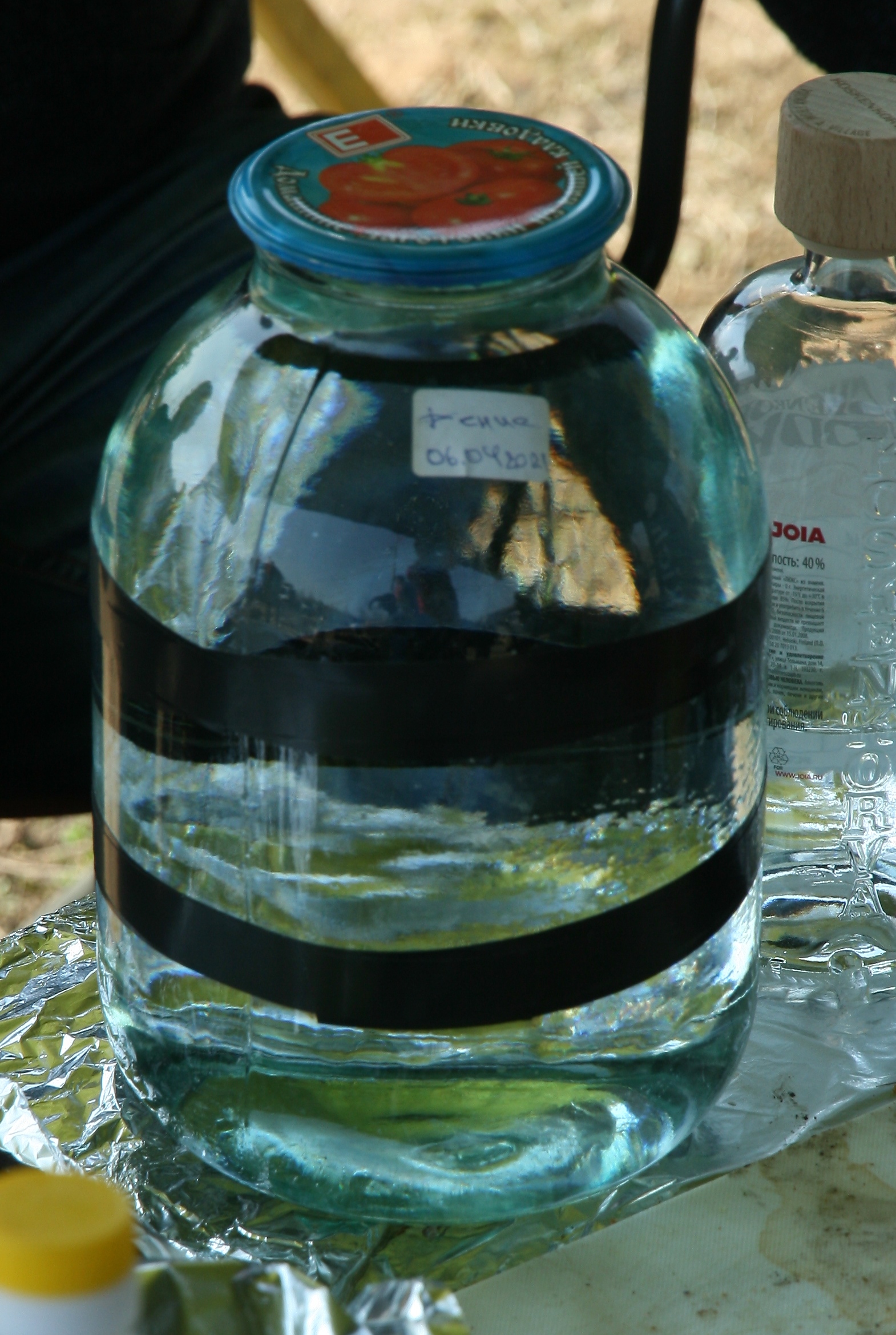 Кароче, мешок банок разных, из под всяко говна типа огурчиков и помидоров, что я собрал у себя в шатре, и привез маме, на помывку и дальнейшее использование, содержал трехлитровую банку с остатками спиртосодержащей жидкости, закатанную крышкой, с изолентой по контуру банки...