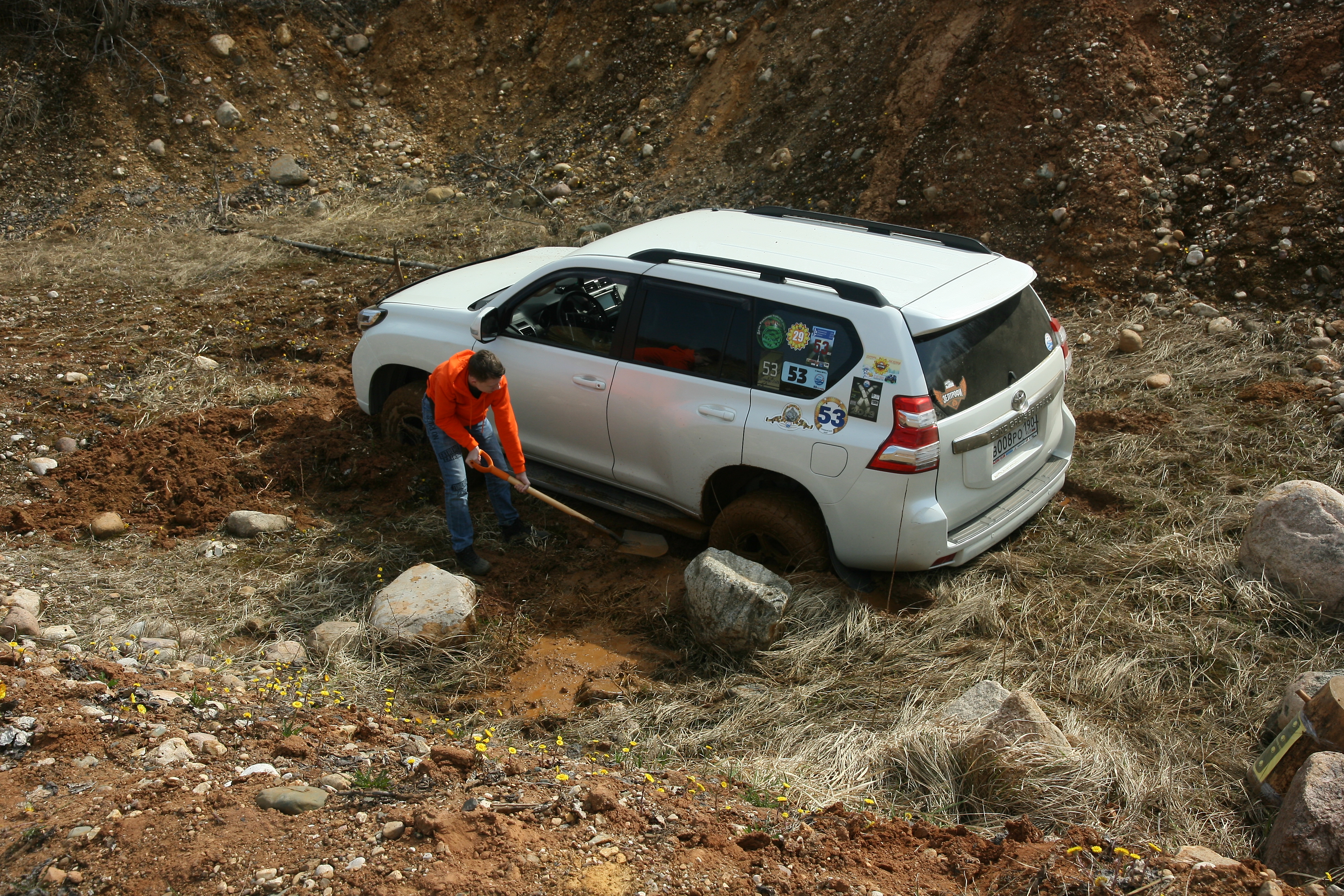 Юра, спасибо за праздник! Было весело!! Пока ШРУС не порвали...) Потом с точки 5:2 до лагеря добирались дольше, чем брали точки 6:3, 6:6, 6:4, 4:5, 5:5 и 5:2 (что успели) вместе взятые. По пути увязли в какой-то песочно-галечно-глиняной чаче. Спасибо командам на Ниве и Джимнике за помощь!