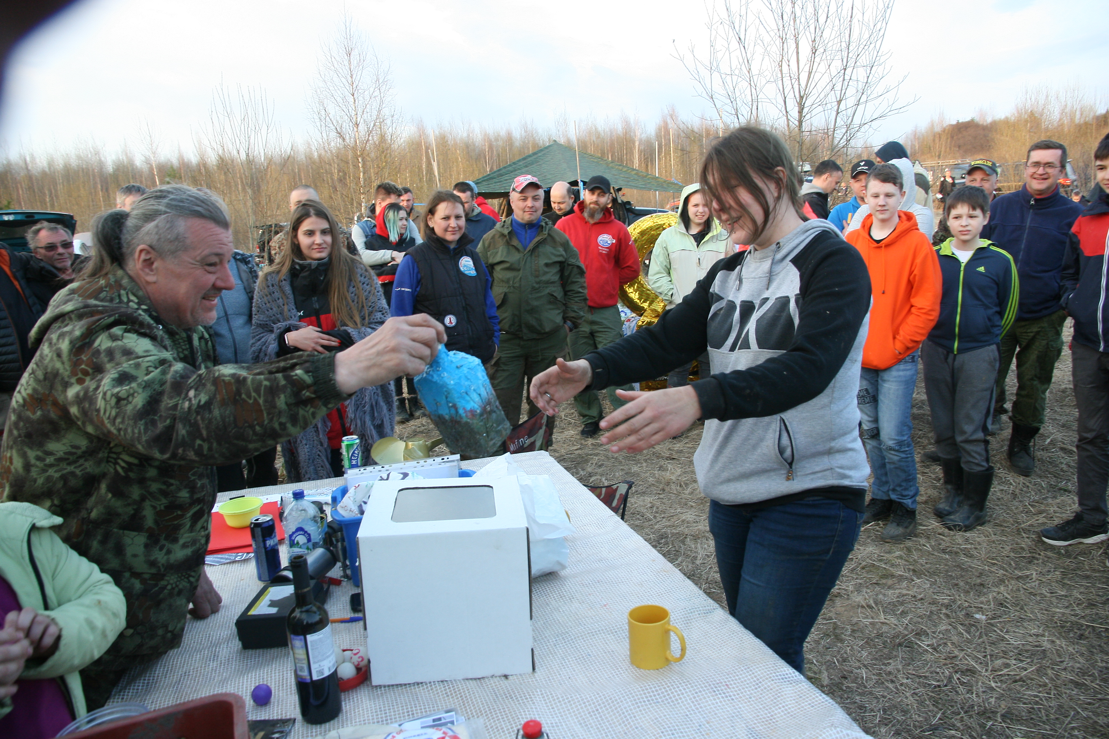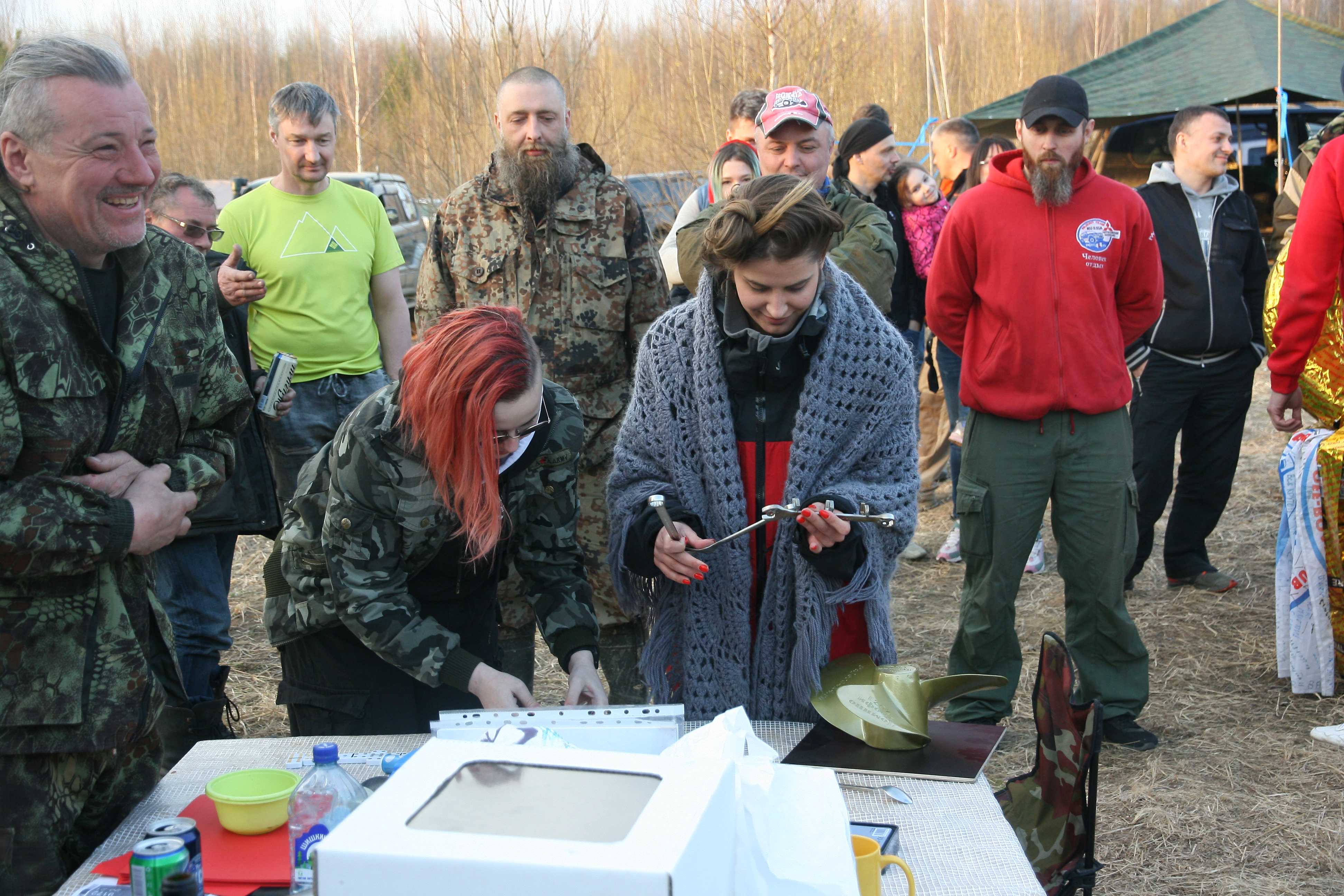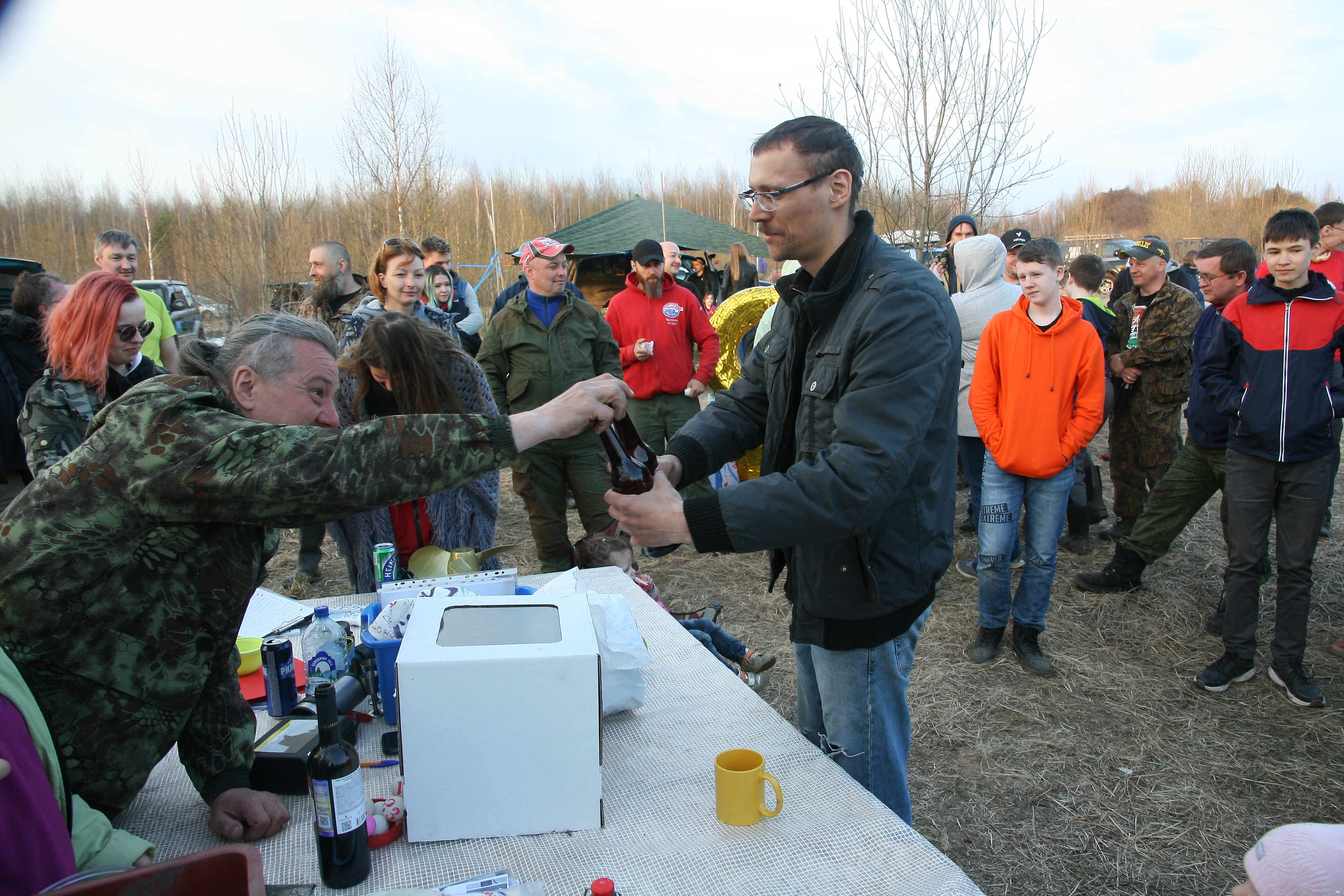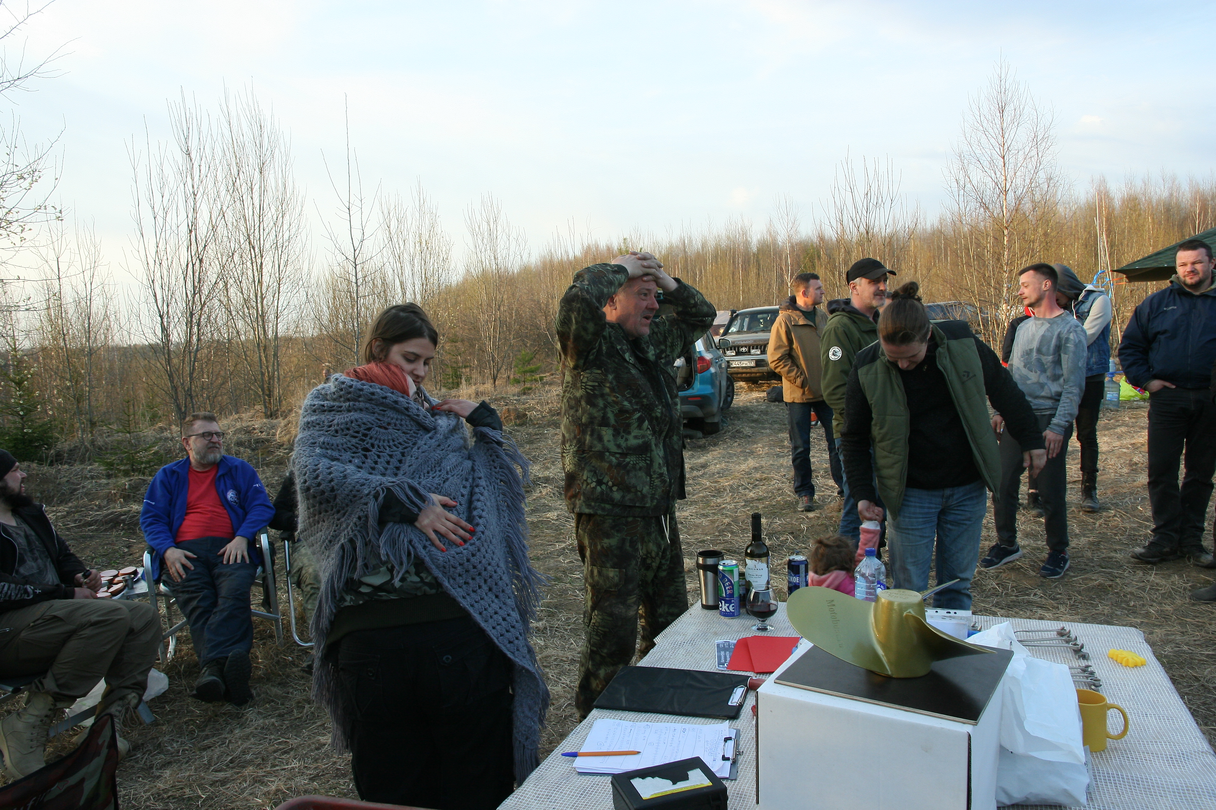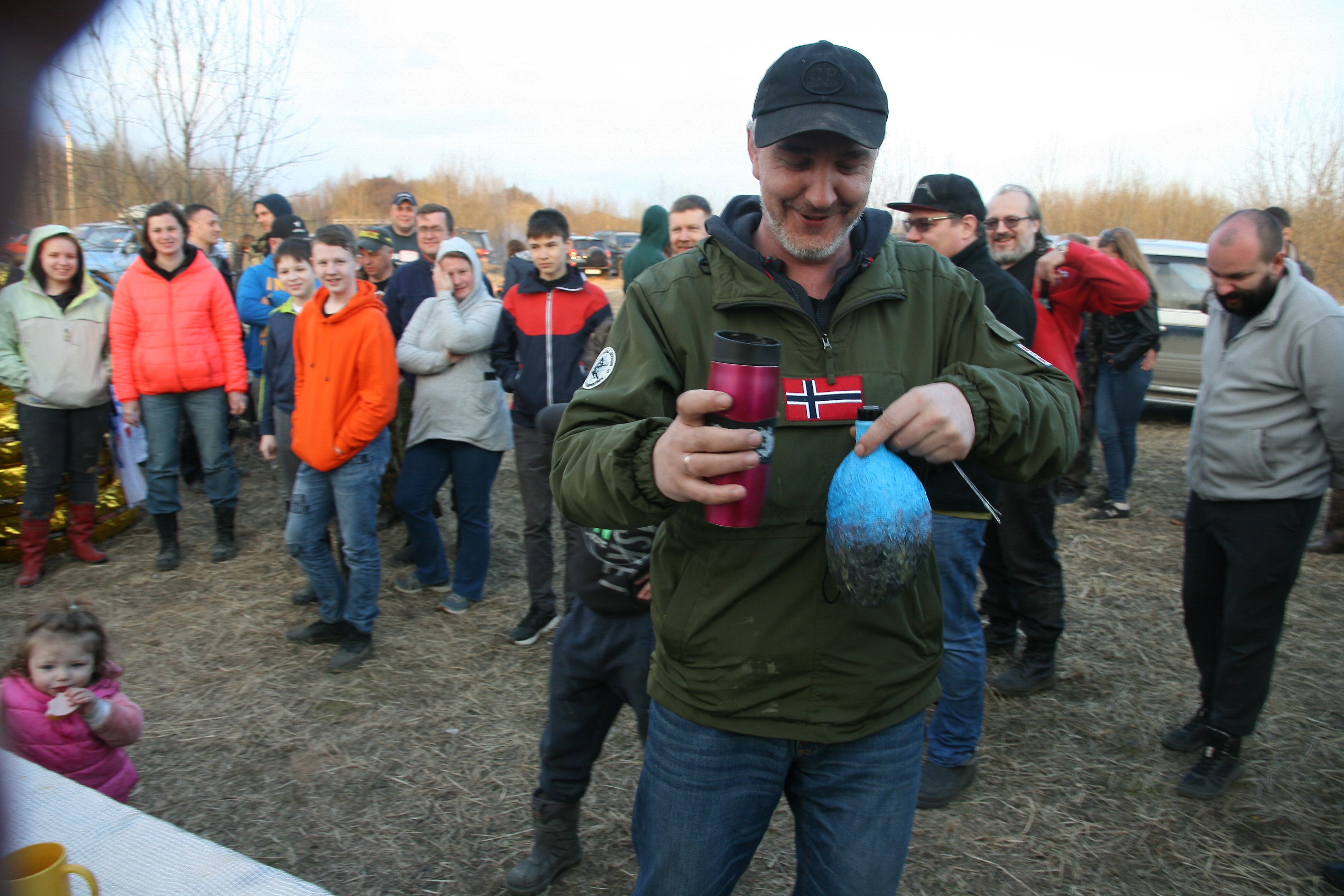 Самое брутальное фото. Приз фляга с самогоном.