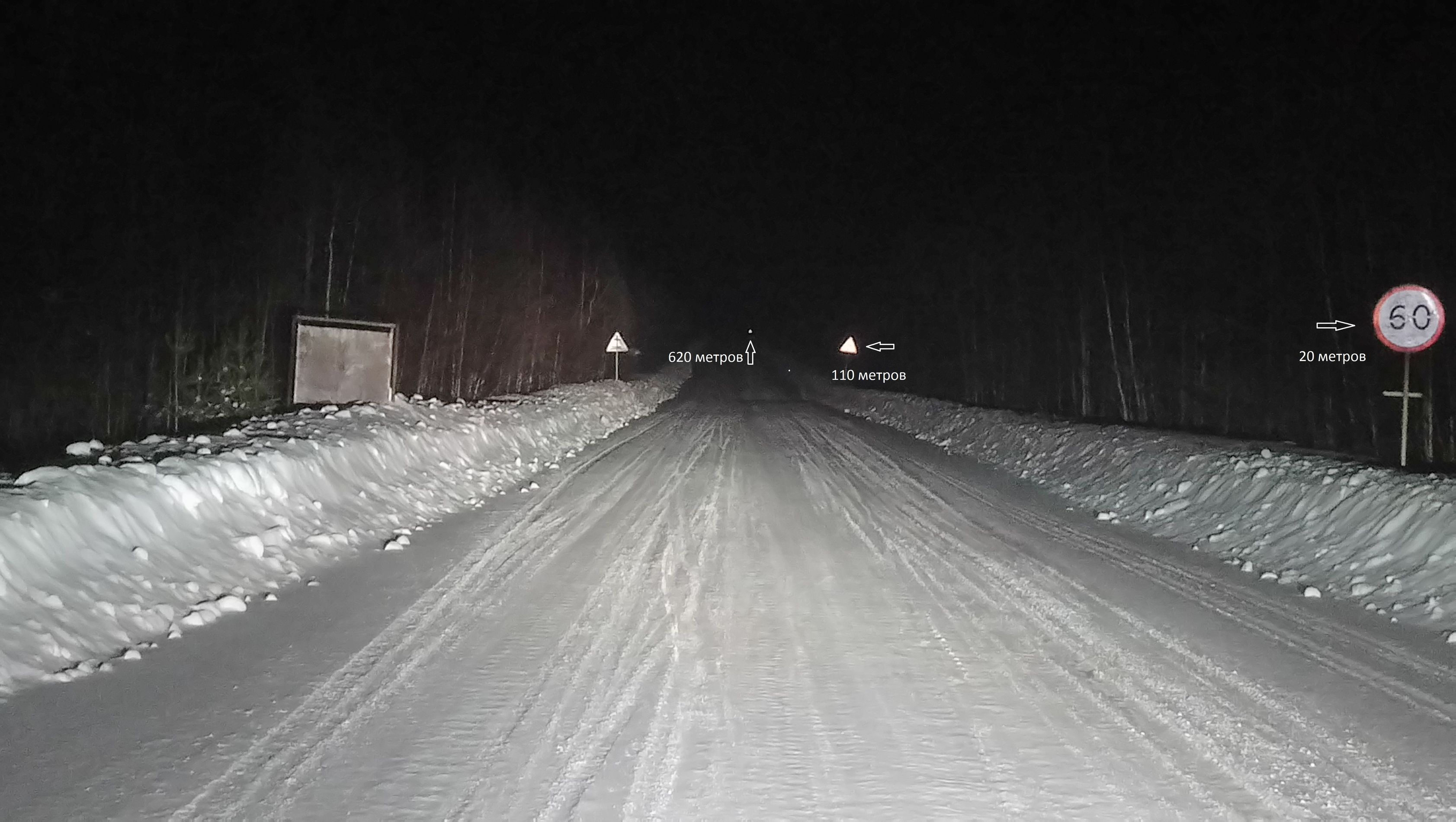 Расстояние измерял еще днем лазерной рулеткой. На фотках только дальний свет. Ближний остался без изменений.