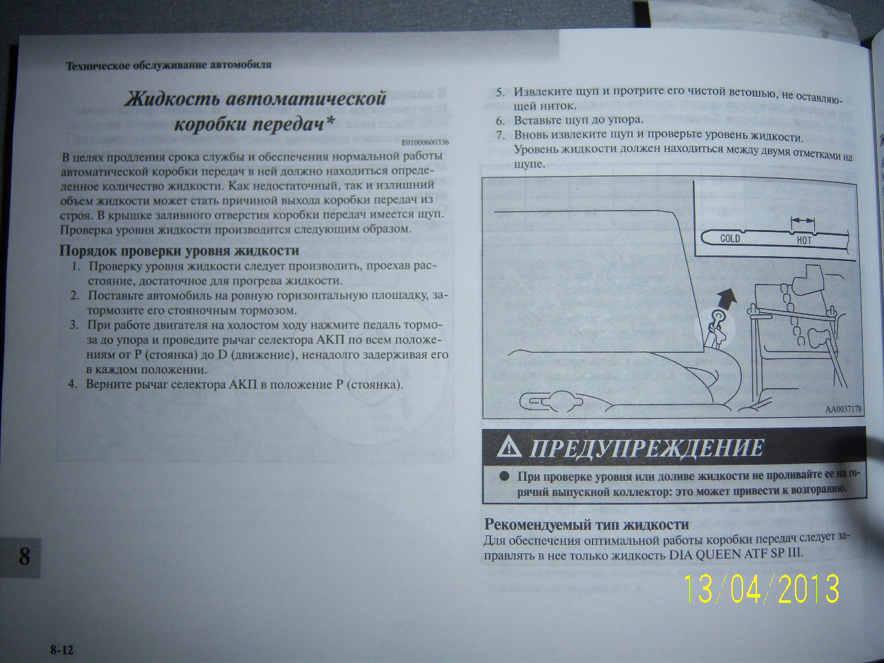 В книжке написано: прогреть, прогнать PRND и обратно, замерить. Потом гляну форум, опачки, спор идёт - на заглушенном/работающем мерить-то? Т.е. что прямо в книжке не указано, вызывает ажиотажные дискуссии у форумчан. И так в любом вопросе
