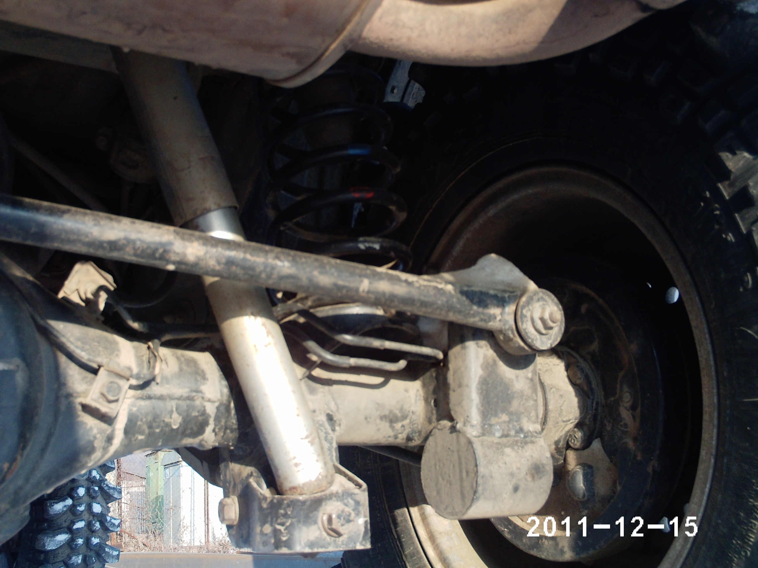 В 2010 на триале погнул стойки в нижней части , отрезал, применил трубу диаметром 48 ммстенка 3мм подкартридж диаметром 38мм диаметр штока соответствует миниковской , NHK XPSZ005R Эскудо .Соответственно проставки под балки 50мм .Проставки 30мм .Вес машины с пятью такими колёсами ,с силовым бампером 3мм,лебёдкой1170кг. Фотки тяжёлые не могу уменьшить. Можно на Мой Мир ,там проходят.