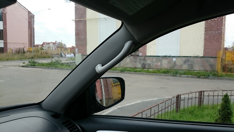 - угол наклона в салон таков, что удобно как садиться, так и держаться, и при этому ручка не перекрывает зеркало и не мешает противосолнечному козырьку