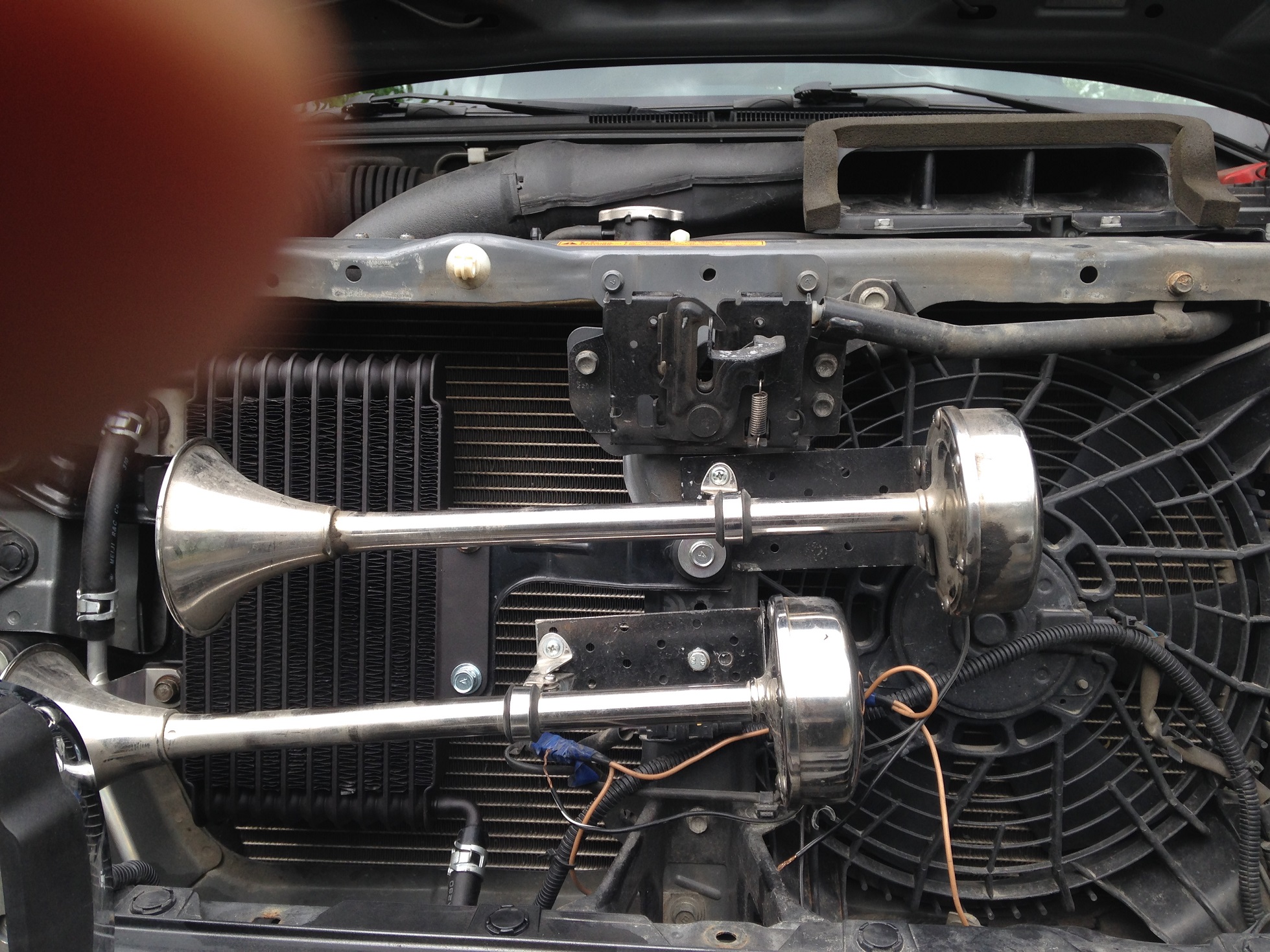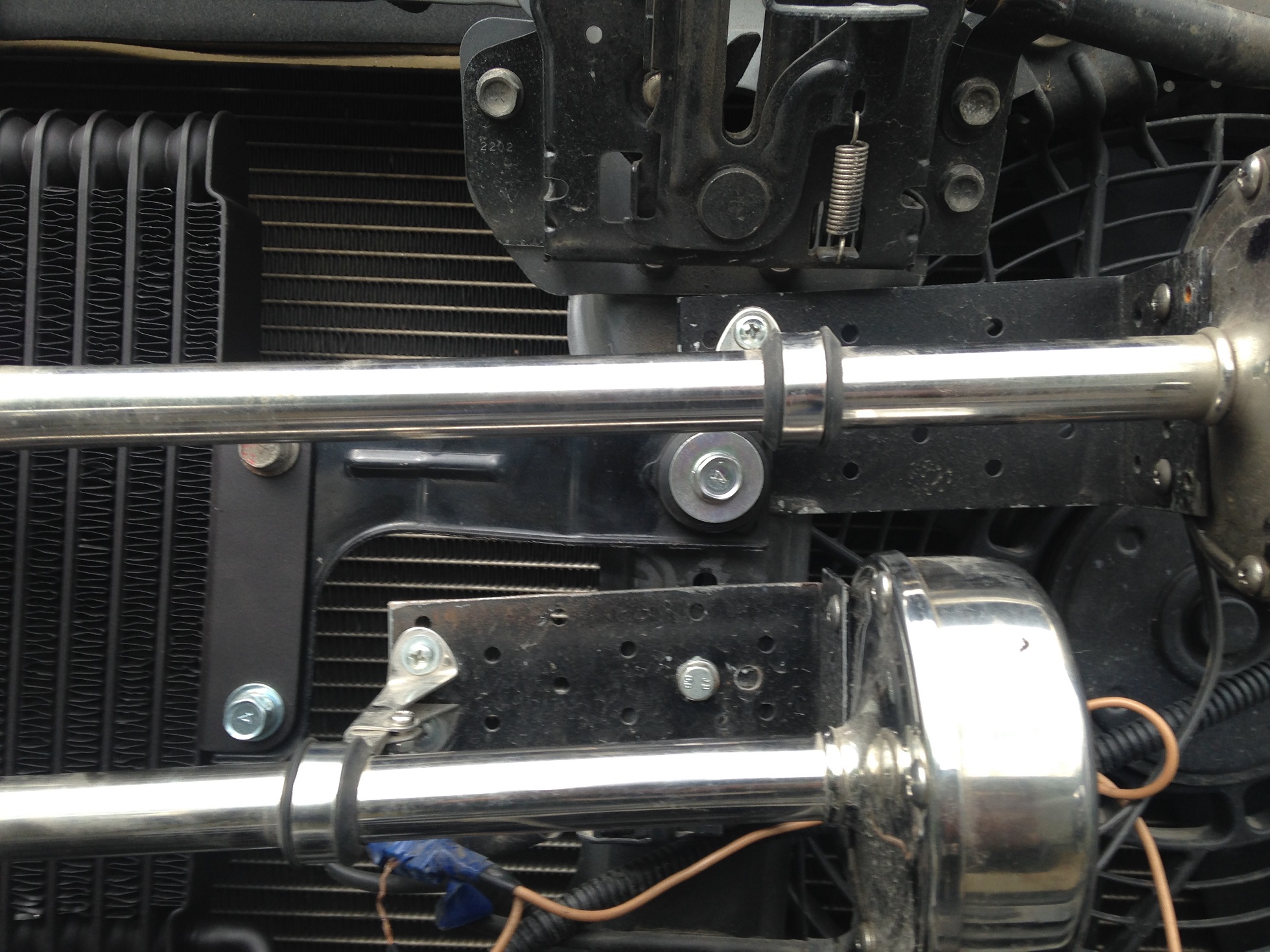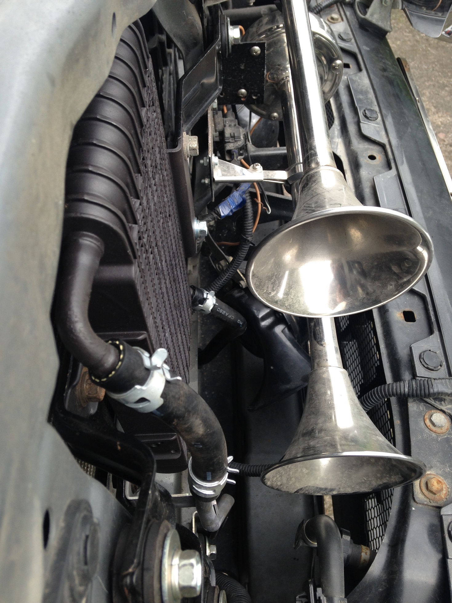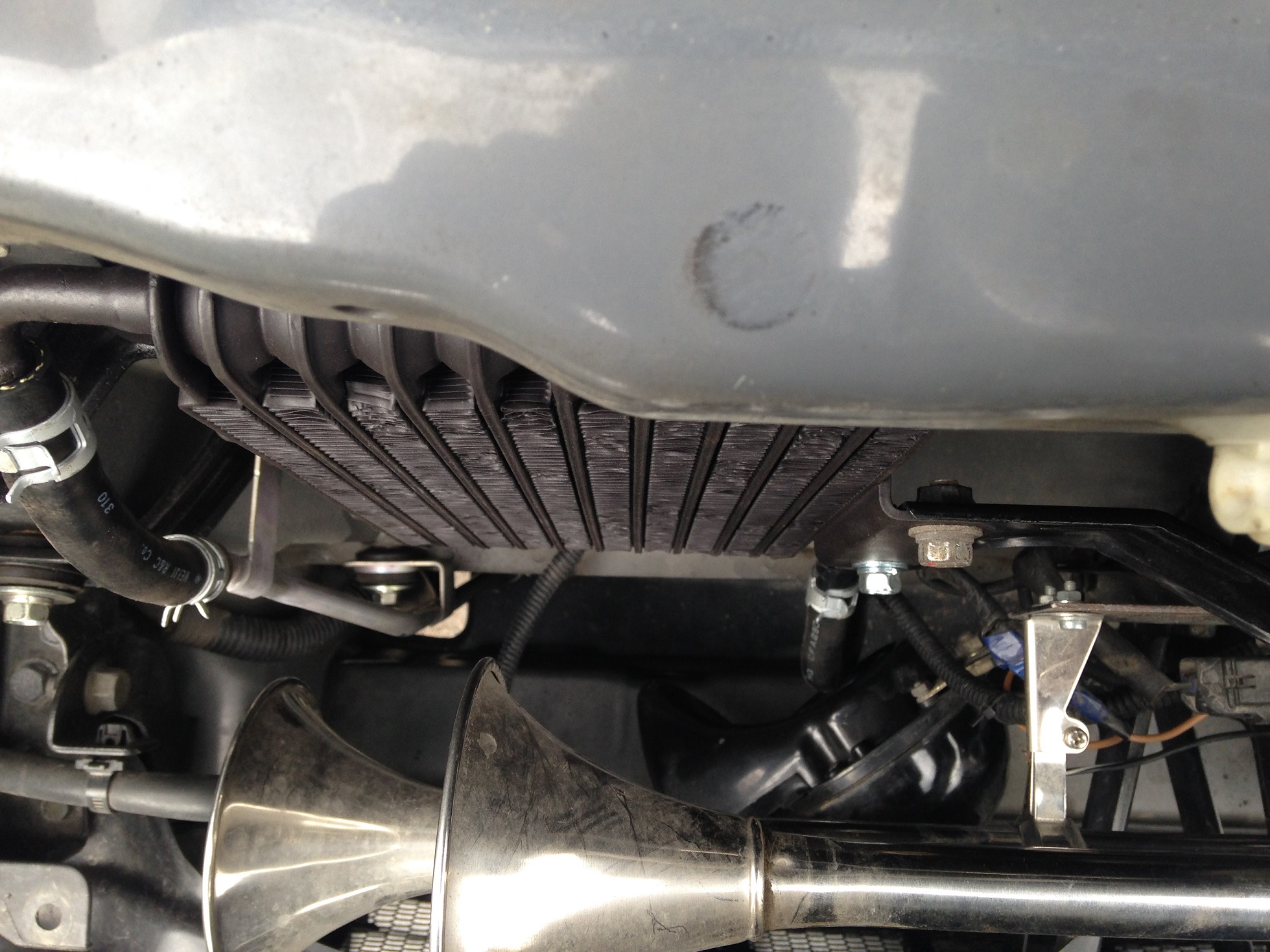 После установки дополнительного радиатора АКПП концепция размещения практически не поменялась. Ничего не сверлил и т.п., просто собрал.Lebed писал(а):Сфотографировал. И сигналы на авто, и коробку из под них. Фото с рулеткой для тех, у кого имеется допрадиатор. Ракурс постарался взять по вертикали. В моём варианте монтажа и при его (радиатора) наличии, думаю проблем не будет. За беспорядок в проводах сорри, пока не прибрался))) Стяжки уберу, пока являются маяками. По грязьке видно всё будет))) Скорее всего, для нижнего сигнала поставлю ещё одну точку крепления на кузов.