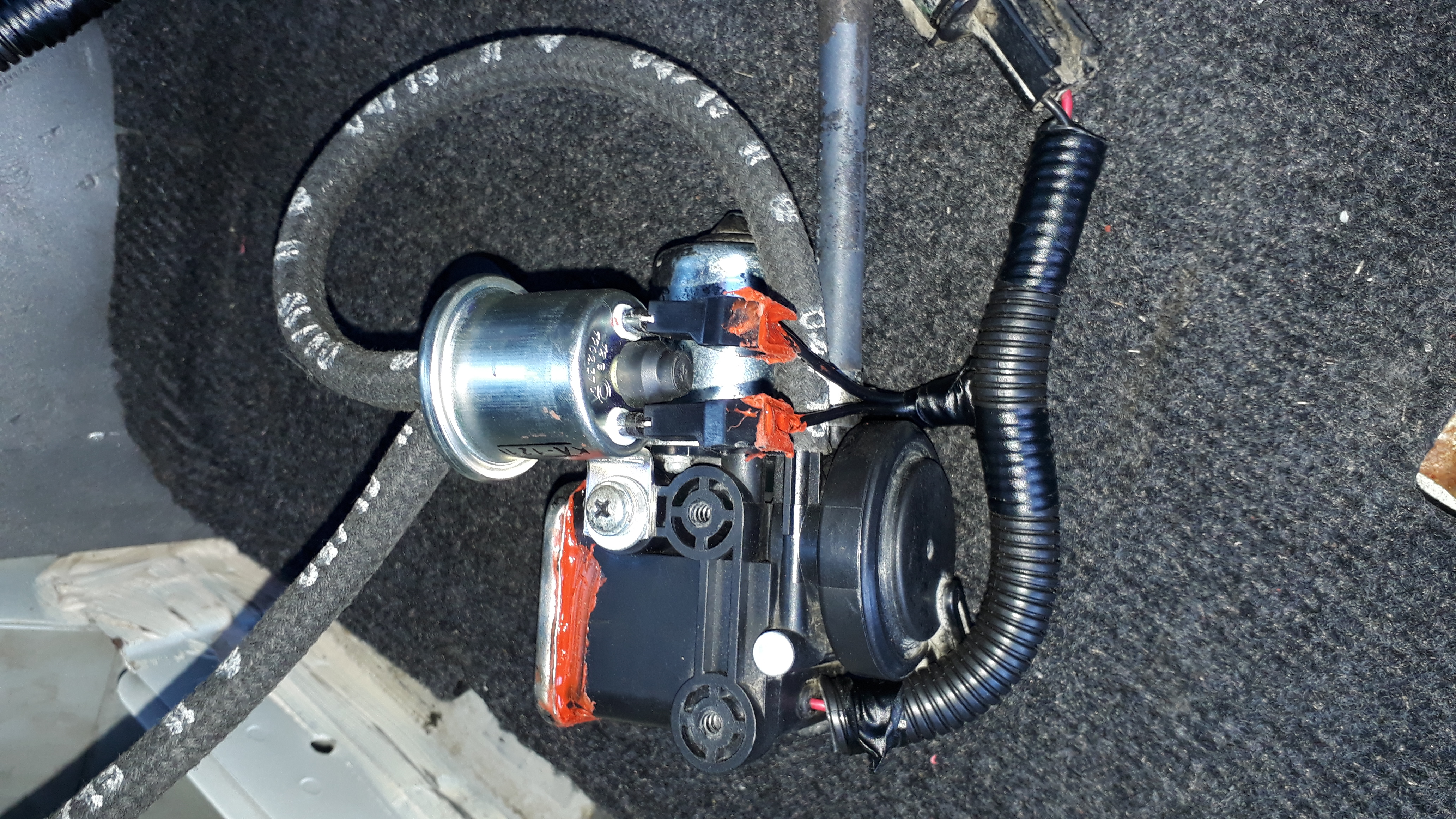 Далее все собрал, начал проверять работу блокировки. Попутно выявил треснувший шланчик и оборванный провод от датчика, отвечающего за работу жёлтого кружочка индикатора. Сгнивший провод был надставлен и как следует загерметизированы. Шланчик был отрезан покороче. В итоге блокировка работает, индикация тоже в норме.