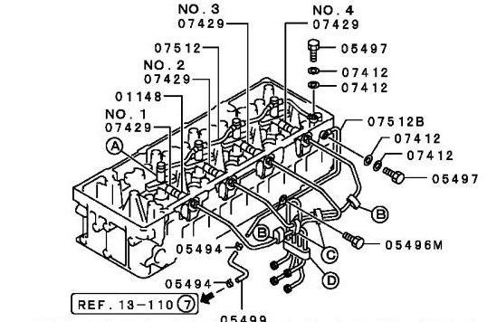 Я так понимаю что нужно тянуть опр. моментом, дабы не сорвать резьбу где не надо, а дин. ключа пока нет, кстати а какой момент затяжки вот этих самых 01148? Еще напрягает, то что к одной из форсунок трубка подходит к изображено на рисунке ниже...