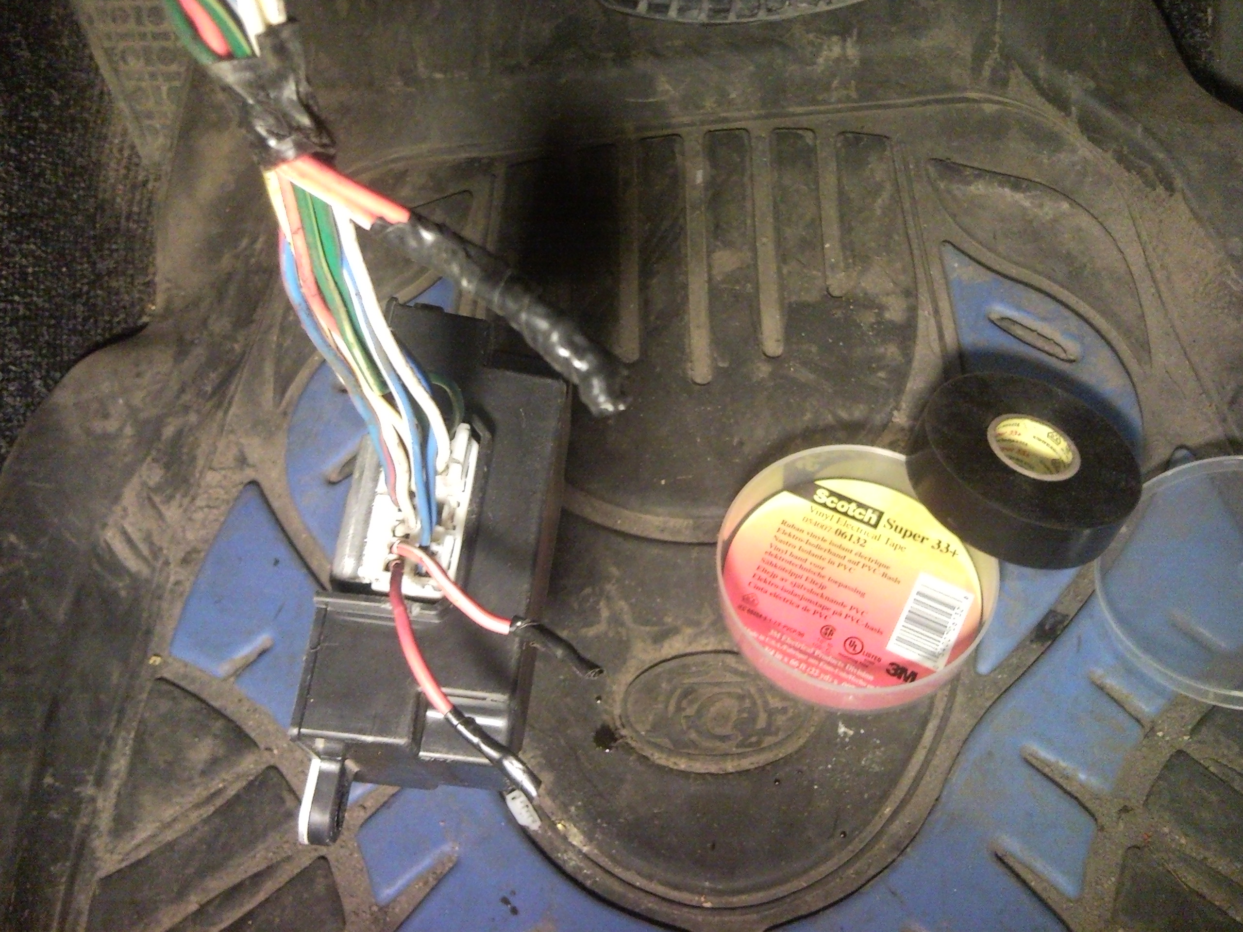 Вот разъём пошел по проводам ,два белых ушли к отключенному разъёму синего цвета ж/б к откушенному концу в синей изоленте остальные идут в толстые жгуты под щиток приборов