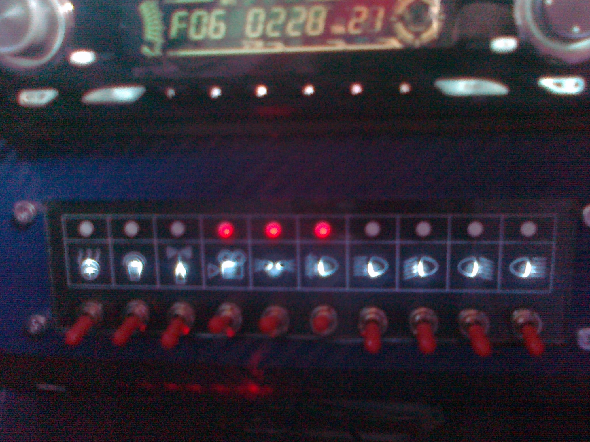Они скорее всего не слабовато светят, хотя и этот параметр нужно глядеть, а не видно их из-за того, за что светодиоды и не любят- из-за узкой направленности потока. У тебя панель внизу, поэтому смотришь ты на неё "из-за угла". Тут скорее всего мало что поможет. Поиграться конечно можно, но нужно смотреть справочные данные светодиодов по параметру угла потока и рассеиваемости корпуса самого диода, ну или прямо в магазине зажигать разные и смотреть. Но можно попробовать пойти другим путём: нужно, чтобы светодиод не сам светился, а светил через какую-нибудь рессеивающую поверхность, допустим матовую плёнку. Такую же плёнку проложить и под значками подсветки, возможно тогда и светодиоды не придётся менять.1. слабовато светят сигнальные диоды. Плохо видно на свету. надо поставить помощней.