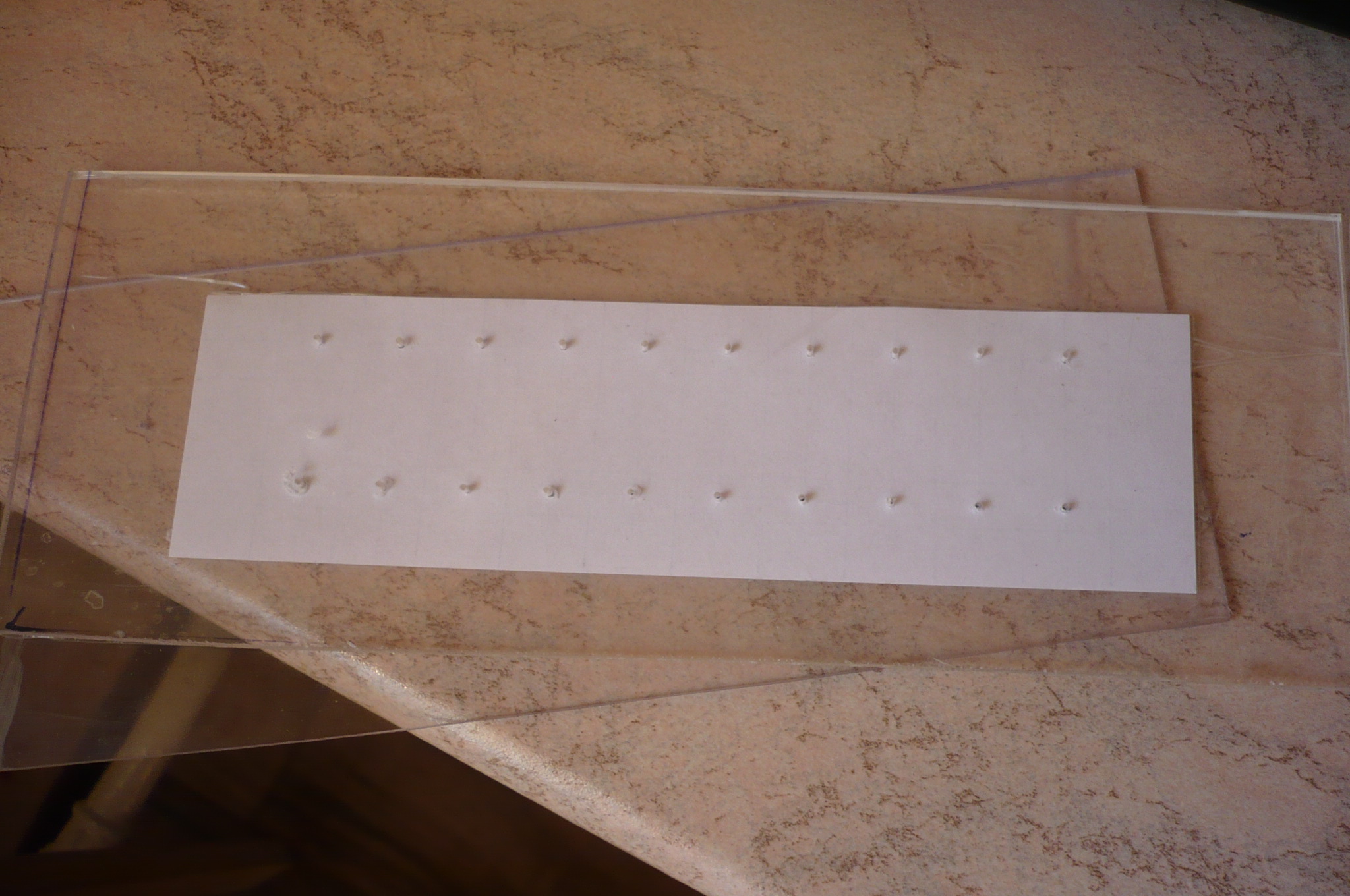 по распределению света (для подсветки) планировал так: в первых два слоя стекла наложил 4тоб выдержать толщину для длины диода, 3 слой оставил без отверстий для распределения света по всей площади на нее и наложил бумагу а 4етвертый слой стекла так для защиты. Но млин эти диоды лу4ем бьют, придется наверно то4но матовую пленку наклеивать или того лутьше заменить 3 прослойку на матовое стекло.