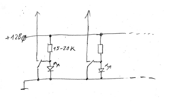 про светодиодики- подкину идейку . Тумблеры у тебя вроде должны нормальнозамкнутый контакт иметь. Только я там с номиналом сопротивлений накосячил, нужно поправить не 15-20 кОм, а 1,5-2 кОм . Что-то клинонуло меня.