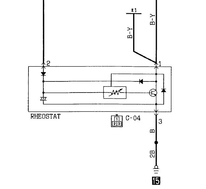 Я его отцепил, включил габариты и померял на нем потенциал - плавает от +6 до +11В, когда крутишь реостат.
