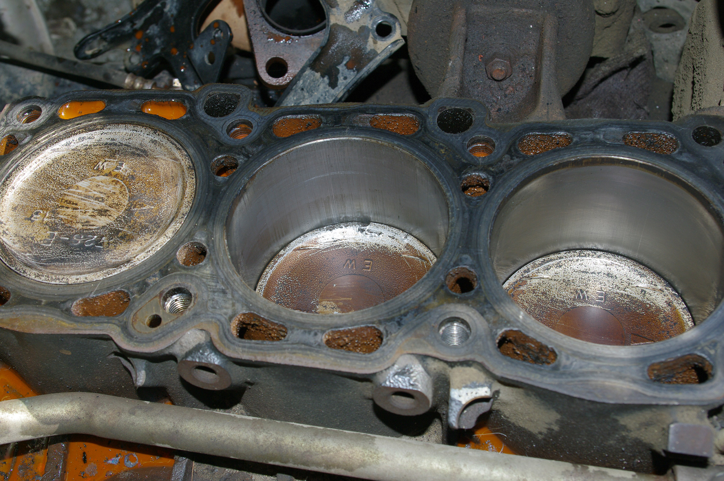 Да двиг разобран. Головки сняты. Смотрели и на блоке, и в том месте куда головка садится т.е. сверху блока.